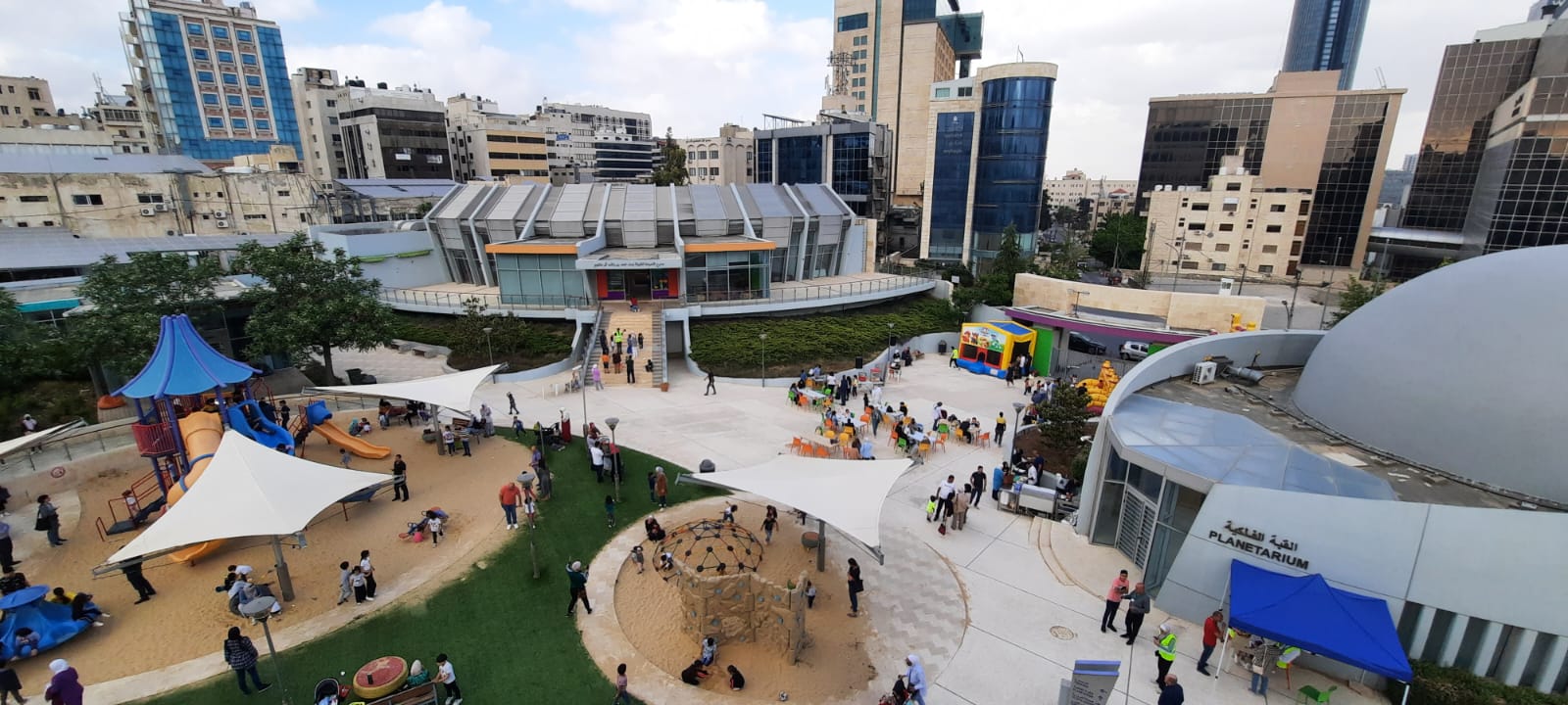يلي قصة الحكواتي عرض لفرقة اوسكار للدبكة وجولة للقطار في محطات المركز ابتدا باكاديمة الفنون البصرية حيث ستقدم الاكاديمية ورشات الاشغال اليدوية وستشارك الاطفال في تصميم "القطار العجيب" مستخدمين الورق والالوان .وسيتوقف القطار بعدها امام محطة القبة الفلكية والتي ستفتح ابوابها لعرض فيلم "رواد فضاء بالصدفه" حيث سيذهب الاطفال في مغامرة شيقة غير متوقعه في الفضاء مع "ساي" و"آني" وكلبهما "ارمسترونج" ، حيث سيكشفوا معا منظومة الارض والشمس والقمر مع حاسوب مركبة فضاء مرح، ويتابعون تحطم كويكب بعد ارتطامه بالقمر ويمشون على سطح القمر لتفاجئهم عاصفة شمسيه، وأخيرا يجددون تقديرهم لكوكبنا الارض. وبالقرب من محطة القبة الفلكية سيجد الاطفال الحديقة المرورية وسيكون بامكانهم اللعب بالدراجات الهوائية و الالعاب الخارجية.