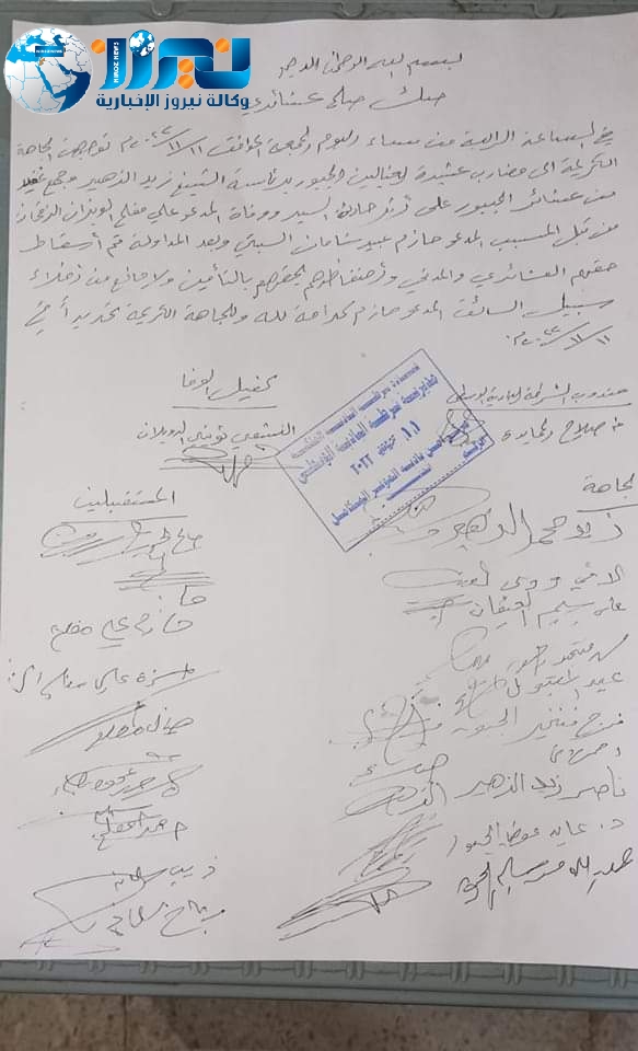 تتقدم عشيرة السبتي < الغيالين> بوافر الشكر وعظيم الإمتنان لأبناء العمومة عشيرة الدغيم < الغيالين> الكرام على كرمهم العربي الاصيل وتسامحهم وحسن أخلاقهم بتوقيع صك الصلح العشائري وعلى اتمام الصلح والتنازل عن حقوقهم العشائرية والقانونية نتيجة لحادث الدهس الغير مقصود ، من قبل حازم عبيد شامان السبتي الذي أودى بحياة المرحوم علي مفلح اللويزان الزقيمي.