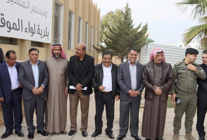 و كان في الاستقبال سعادة رئيس بلدية لواء الموقر السيد عوض ودى الجبور وعطوفة متصرف لواء الموقر  الدكتور ابراهيم الوحش وأعضاء المجلس البلدي ومجموعة من أبناء اللواء .