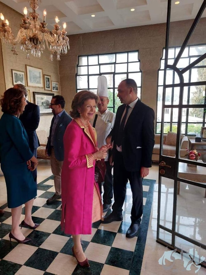 الملك كارل السادس عشر وملكة السويد والامير علي والأميرة ريم والفايز والصفدي في مطعم فخر الدين