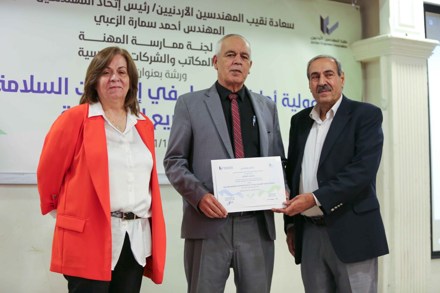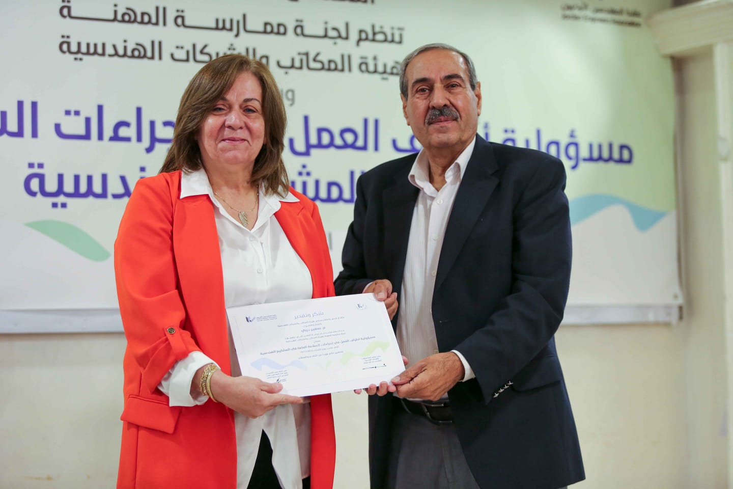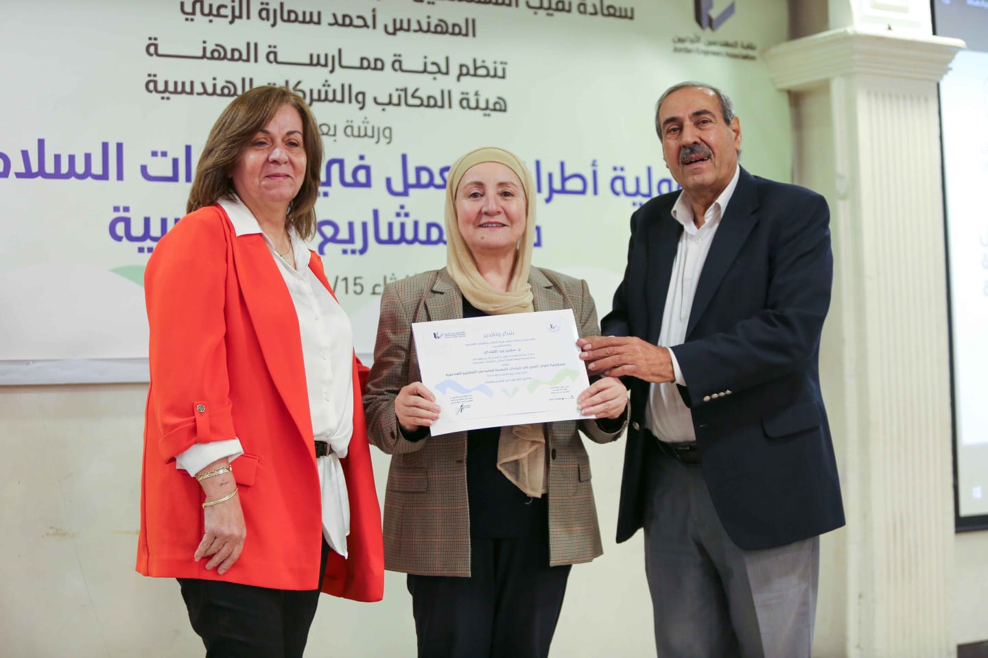 وقالت رئيس لجنة ممارسة المهنة المهندسة سهير دربي، إن انعقاد الورشة يأتي من ايمان اللجنة بأهمية السلامة العامة لتحقيق ثقافة الاهتمام بالسلامة العامة والصحة المهنية على جميع المستويات ولبيان مسؤوليات جميع اطراف العلاقة في المشاريع المختلفة.