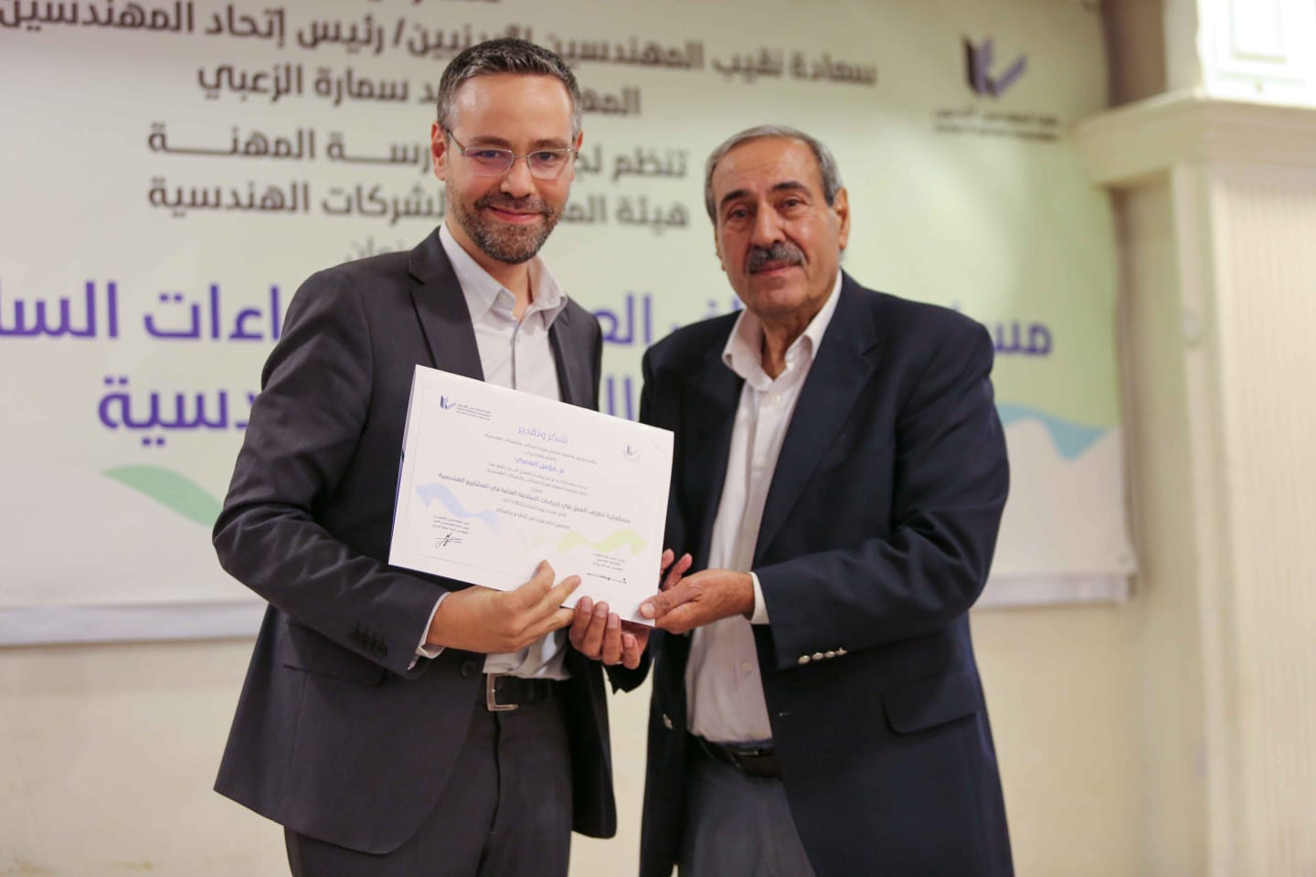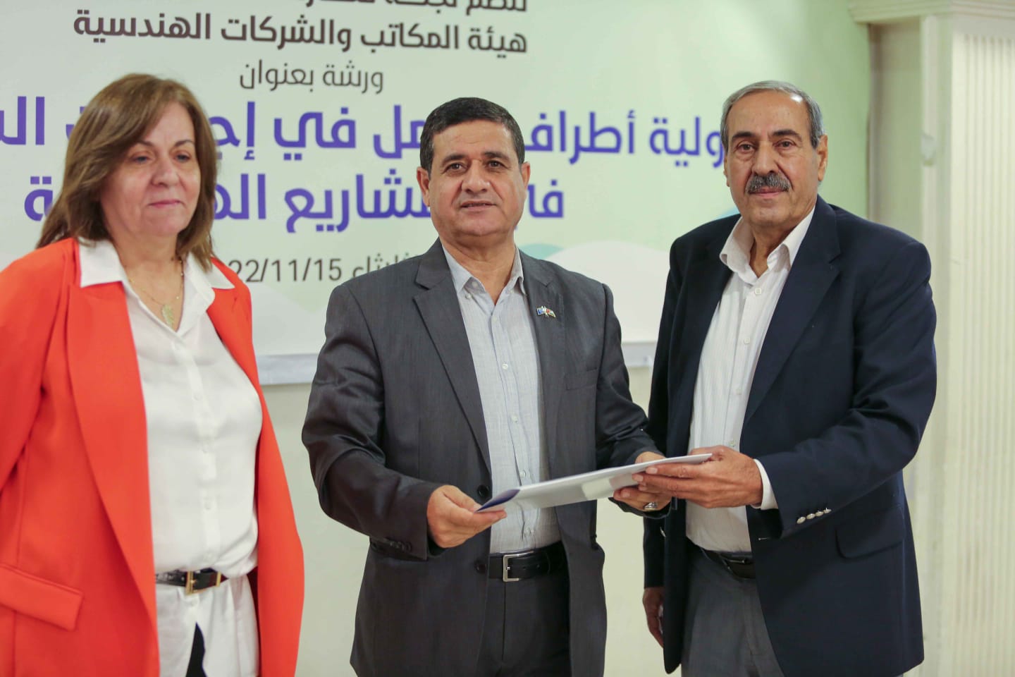 من جانبه، قال رئيس هيئة المكاتب والشركات الهندسية المهندس عبدالله غوشة، إن الهيئة وضعت ضمت خطتها للسنوات القادمة خلال الدورة الحالية مجموعة من الأهداف والخطط التي تتوافق مع متغيرات العمل الهندسي وتطوره في ظل الثورة الصناعية الرابعة والمتغيرات الرقمية، فركزت على موضوع التدقيق الالكتروني للمخططات الهندسية وتطوير المنظومة بما يقلل الوقت والجهد حيث تم وضع برنامج متكامل سيبدأ العمل التجريبي به نهاية الشهر الحالي، إضافة إلى تطوير التخصصات الهندسية بما يتوافق مع التطورات الحديثة في سوق العمل والمتطلبات الفنية وايجاد برامج تدريبية لوفع كفاءة العاملين في القطاع الاستشاري.