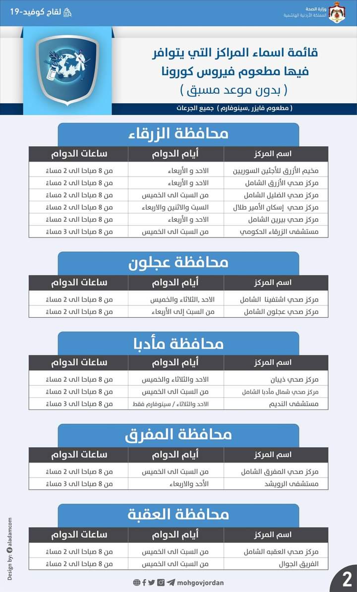 قائمة اسماء المراكز التي يتوافر فيها مطعوم فيروس كورونا (بدون موعد مسبق) #جميع_الجرعات: