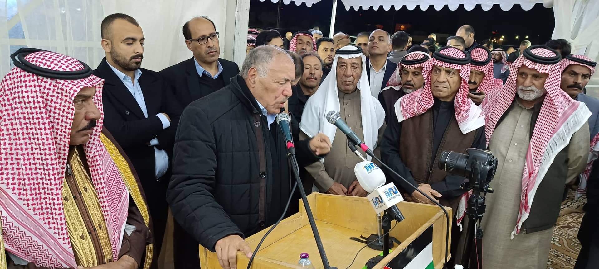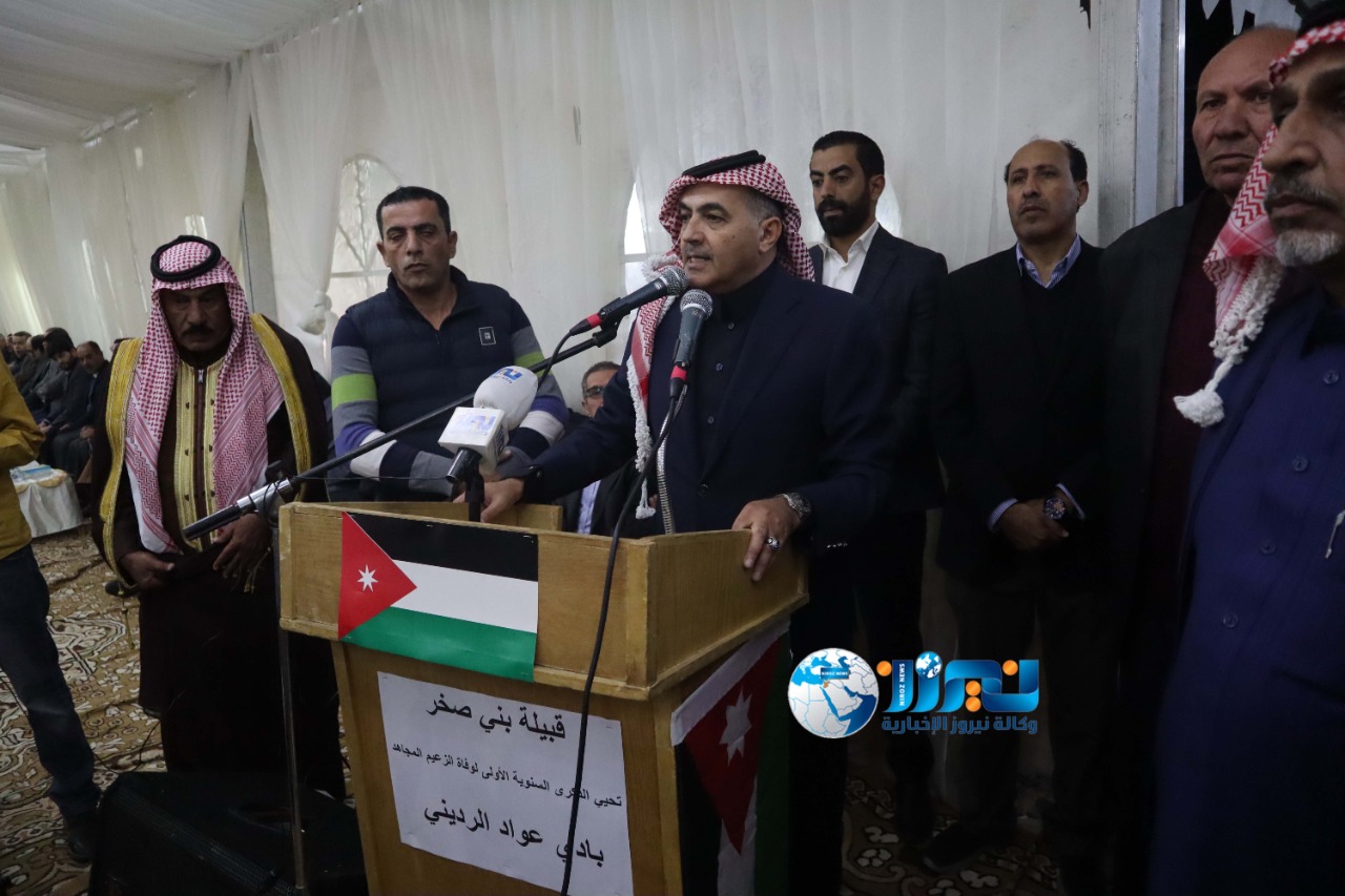 كما أكد أن جيشنا العربي سٌمي بالجيش العربي لانه ضم في صفوفه الكثير من أبناء الأمة العربية التي تداعت للقتال من أجل تحرير فلسطين، وأضاف بأن فلسطين بالنسبة للاردنيين هي القبلة الاولى، ولا تنقسم بالنسبة لنا مشيرًا إلى إن قبيلة بني صخر شأنها شأن القبائل الأردنية من شمال المملكة إلى جنوبها تشرفت بالقتال والتضحية في سبيلها وقدمت الكثير من الشهداء على ثراها الطاهر، مؤكداً أنه "لا يوجد بيت أردني الا وبه مصاب أو شهيد من أجل فلسطين الحبيبة".
