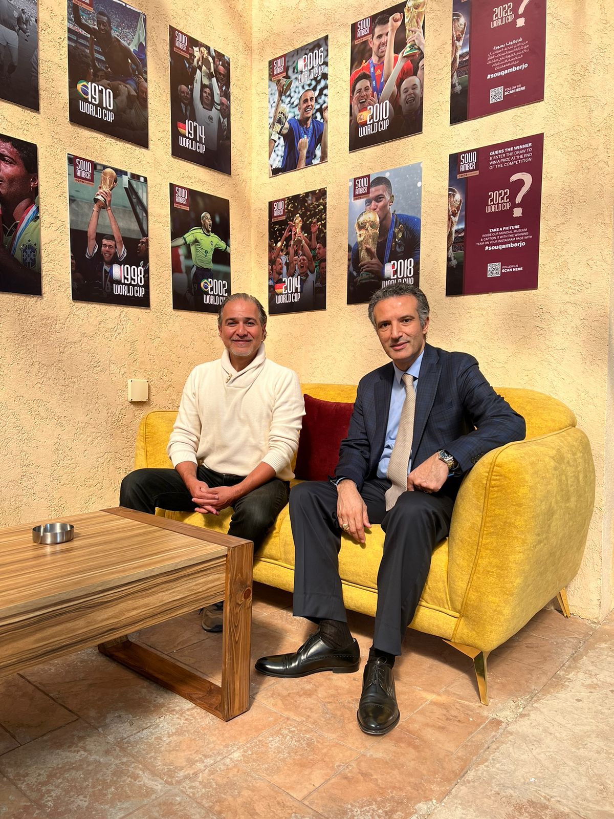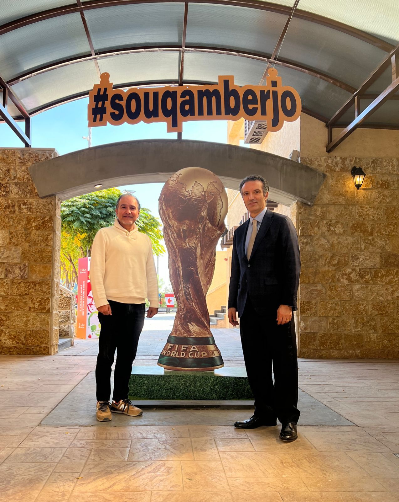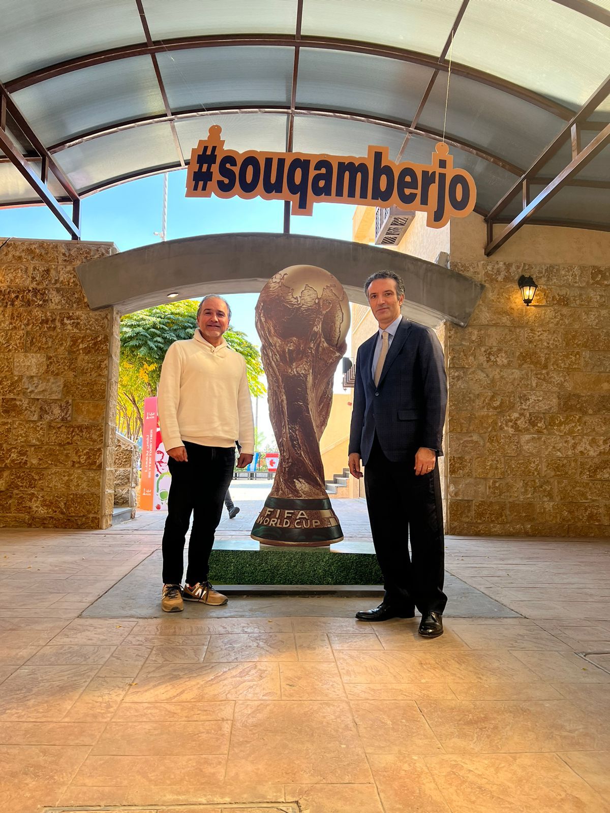 واثنى الفايز على خيمة كأس العالم التي تعكس التراث والقيم السياحة والرياضية بنفس الوقت مشيدا بالمكان في سوق عنبر "متحف القهوة" الذي خصص لاستقبال ومتابعة مباريات كأس العالم في اجواء عائلية وترفيهية تلبي تطلعات الشباب والعائلات في نفس الوقت .