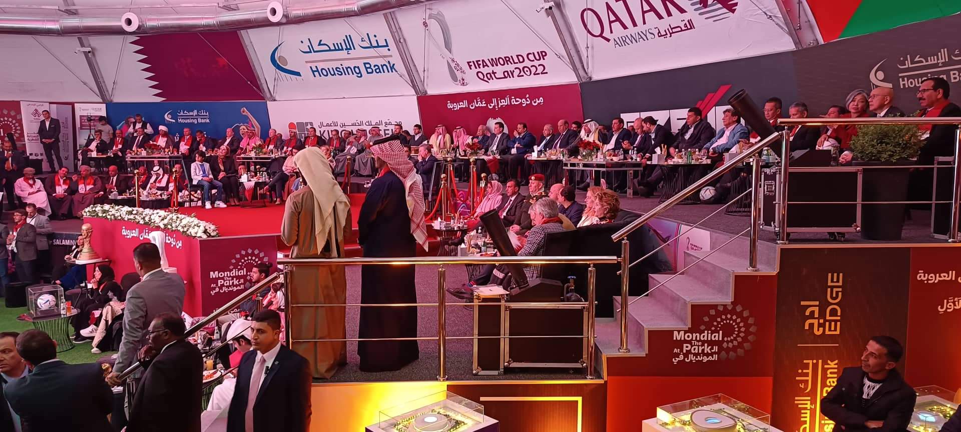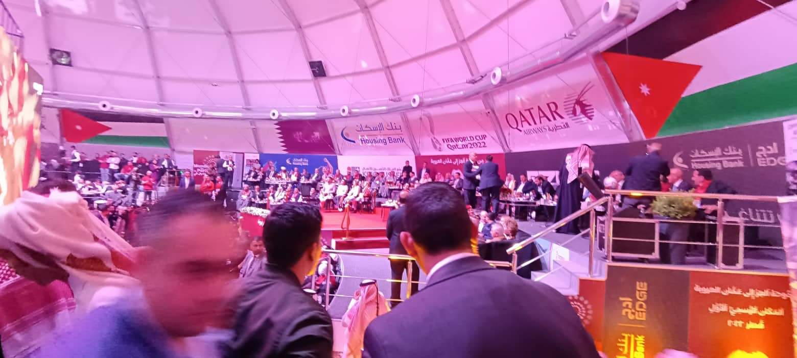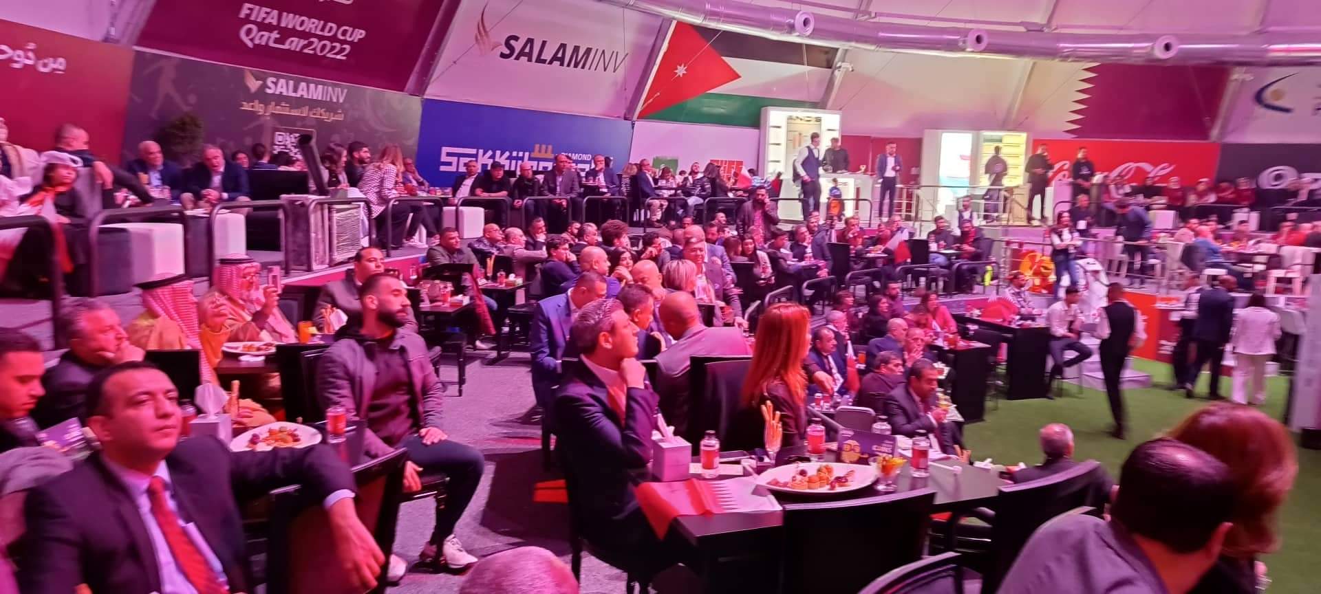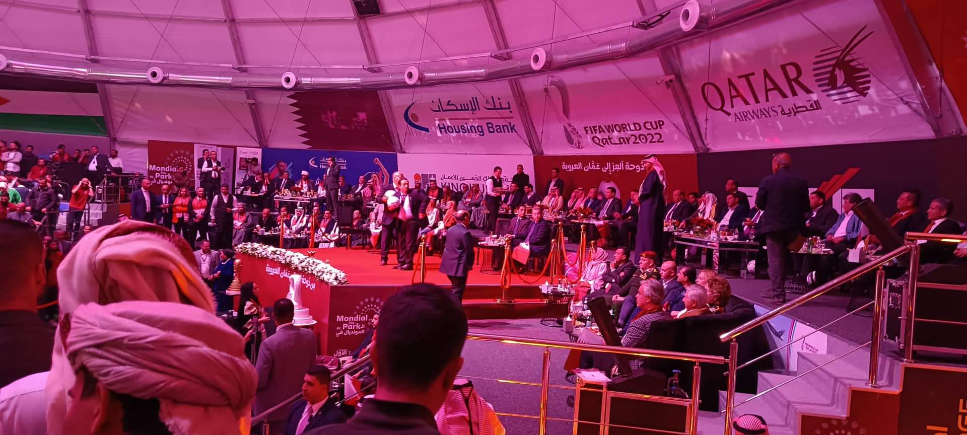 برعاية السفير القطري لدى الاردن الشيخ سعود بن ناصر بن جاسم آل ثاني افتتح اليوم الاحد في مجمع الملك الحسين للأعمال بالعاصمة عمان خيمة كأس العالم التي تقيمها السفارة القطرية في الأردن بمناسبة انطلاق مونديال قطر 2022 .
