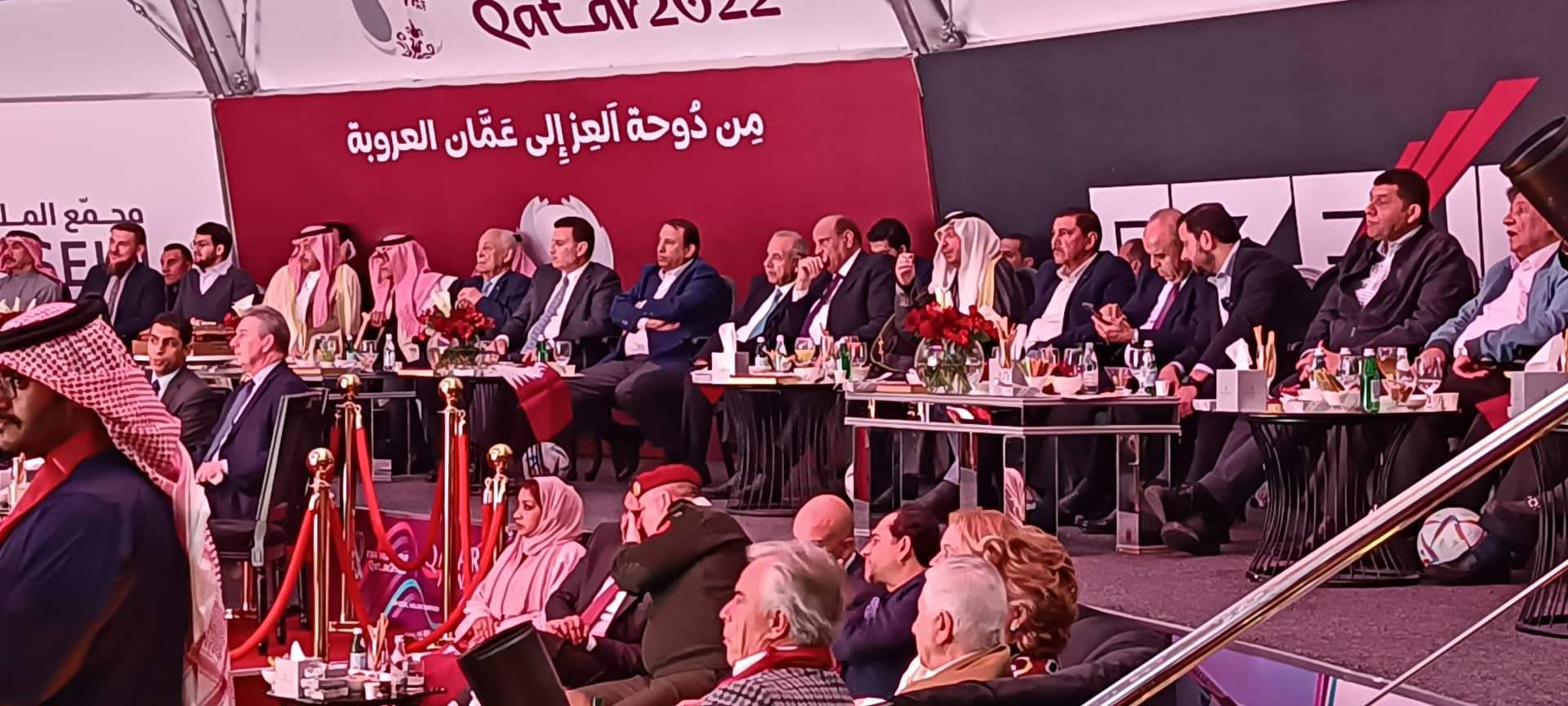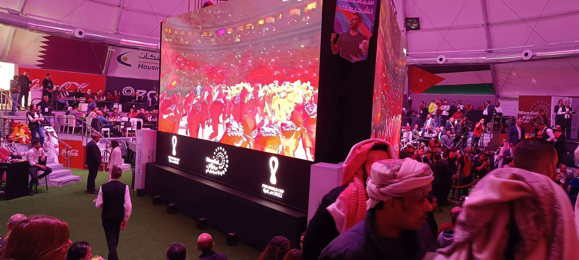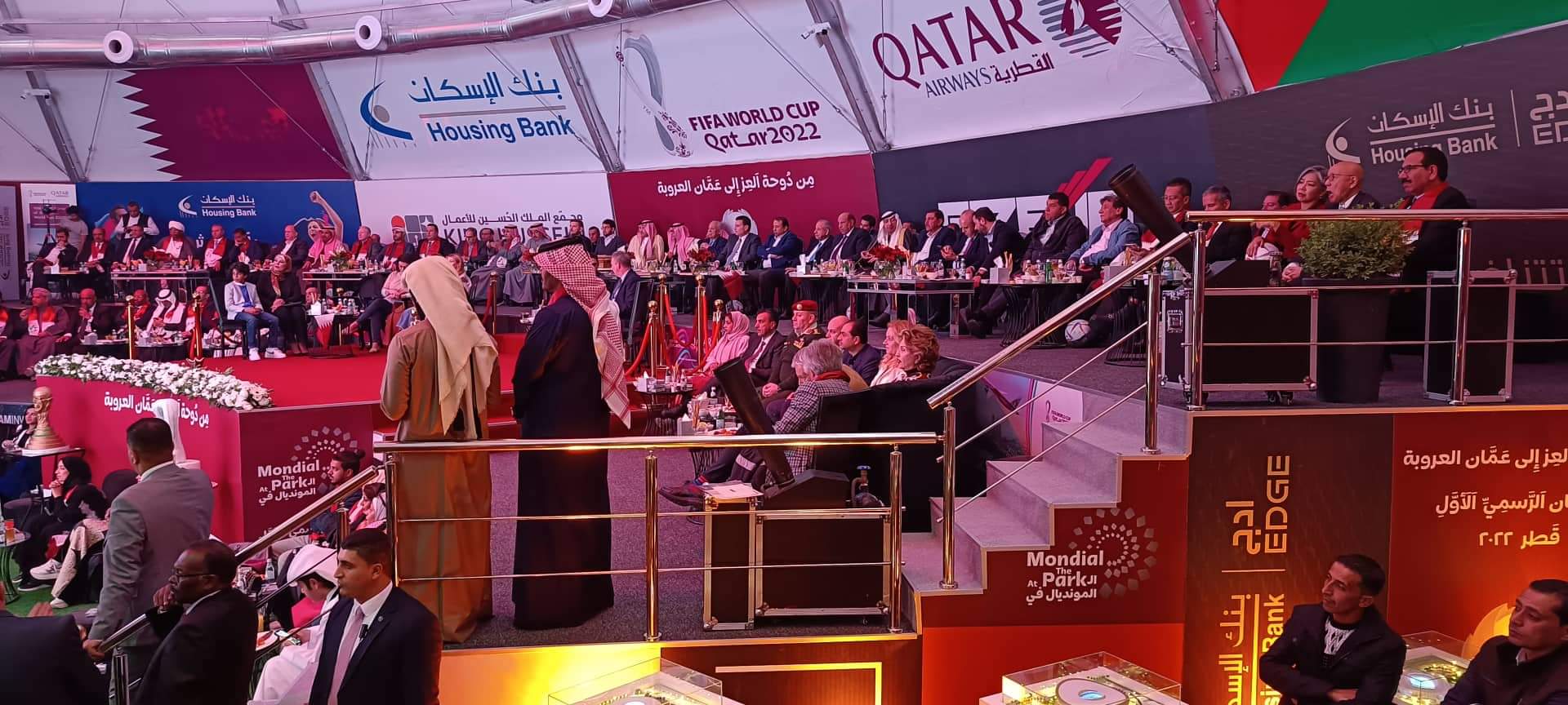 برعاية السفير القطري لدى الاردن الشيخ سعود بن ناصر بن جاسم آل ثاني افتتح اليوم الاحد في مجمع الملك الحسين للأعمال بالعاصمة عمان خيمة كأس العالم التي تقيمها السفارة القطرية في الأردن بمناسبة انطلاق مونديال قطر 2022 .