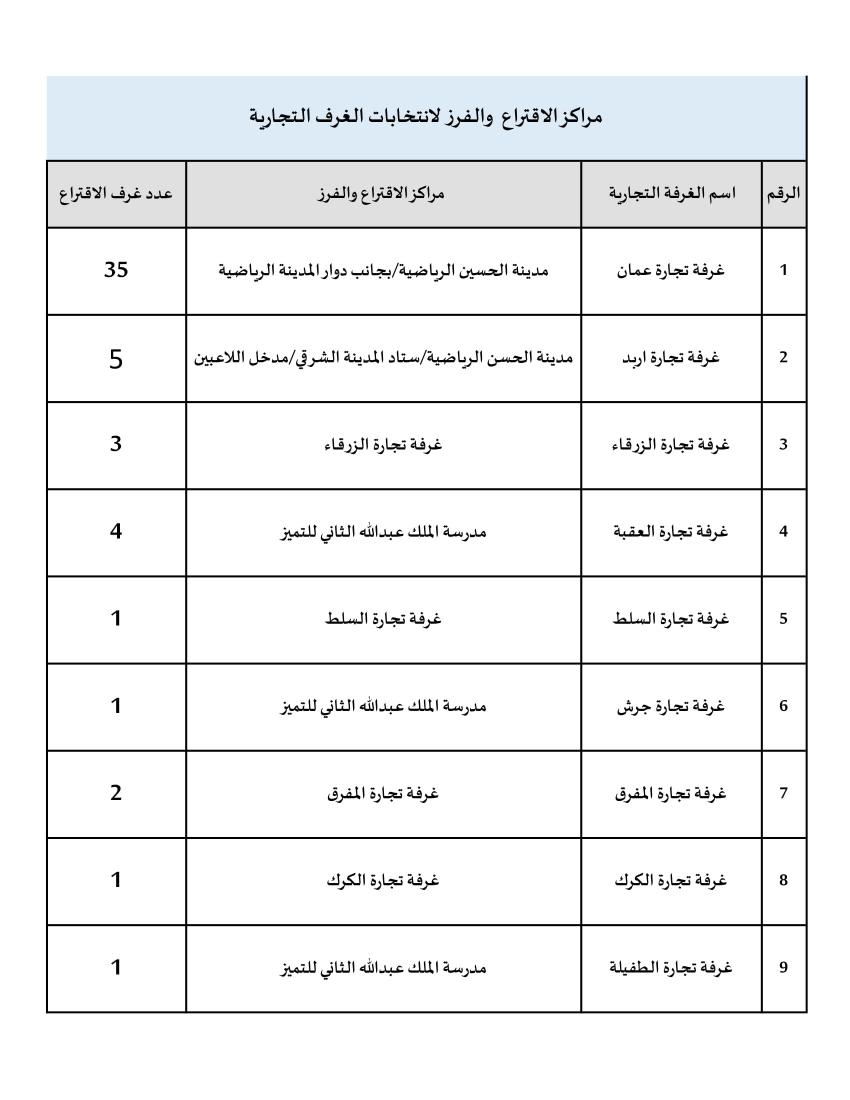 وبينت الهيئة إسم مركز الاقتراع والفرز وعدد غرف الاقتراع في كل غرفة تجارية.