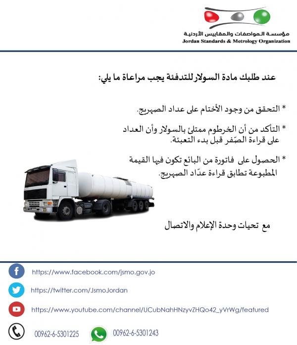 وبينت أنه في حال الشّك بصحّة قراءة العدّاد أو نوعيّة السولار التبليغ عبر واتساب الشكاوى 065301243 أو عبر تطبيق "بخدمتكم".