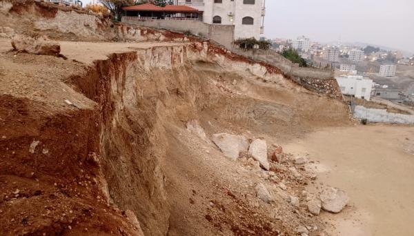 أعمال حفريات تتسبب بانهيار وتصدعات بشارع في جرش (صور)