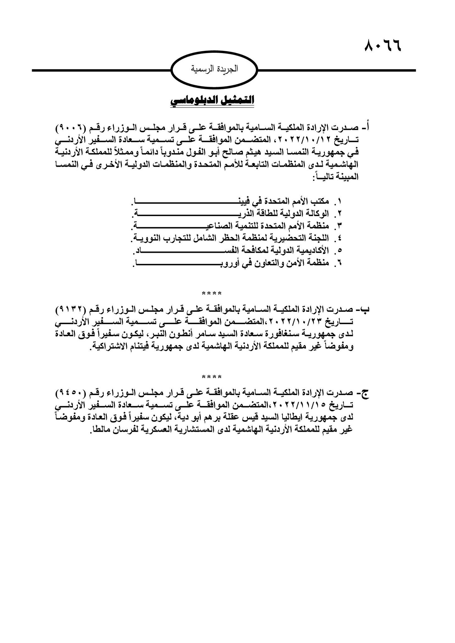 إرادات ملكية بالسفراء أبو الفول والنبر وأبو دية (تفاصيل)
