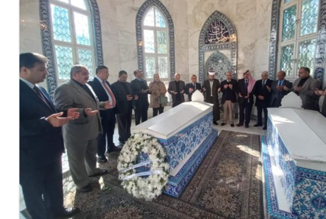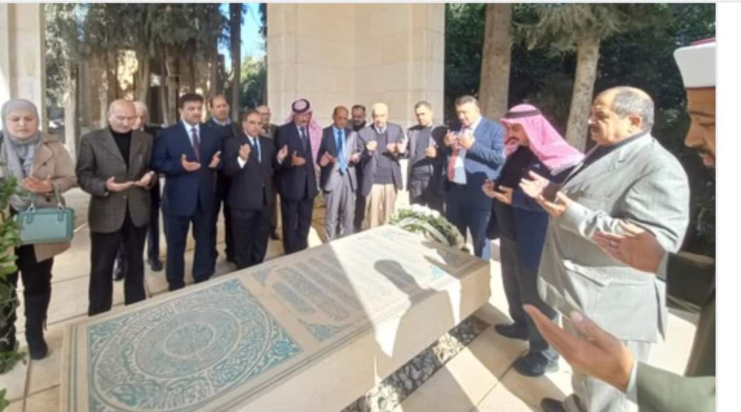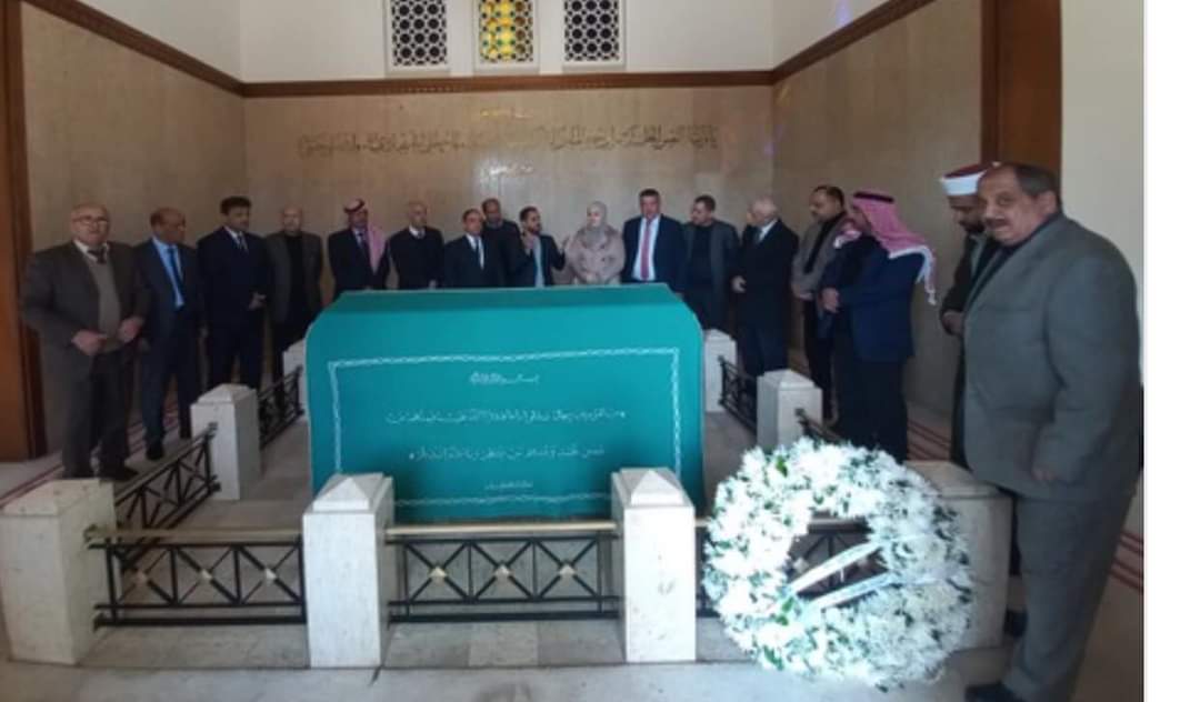 و زار الوفد جناح الملك الباني الراحل العظيم الحسين بن طلال وبعد ذلك إلى الاضرحة الملكية حيث تم وضع اكاليل الزهور على اضرحة كل من : الملك المؤسس والملك طلال والملك الباني وتم قراءة سورة الفاتحة .