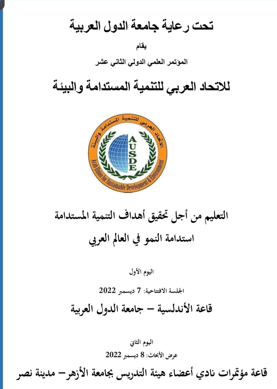 تحت رعاية جامعة الدول العربية وبمقرها بالقاهرة وبرعاية إعلامية من مجلة نهر الأمل، تنطلق فعاليات المؤتمر العلمي الدولي الثاني عشر للإتحاد العربي للتنمية المستدامة والبيئة برئاسة دكتور أشرف عبد العزيز - أمين عام الإتحاد بعنوان "التعليم من أجل تحقيق أهداف التنمية المستدامه" تحت شعار "إستدامة النمو في العالم العربي".