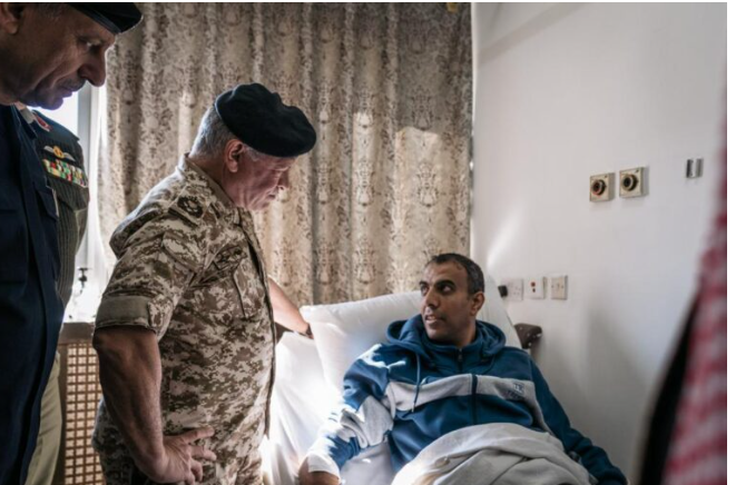 وأطمأن الملك عن الوضع الصحي لكلٍ من الملازم فيصل الدعجة، والعريف حمد السرحان، حيث يتلقيان العلاج اللازم وحالتهما الصحية حسنة.