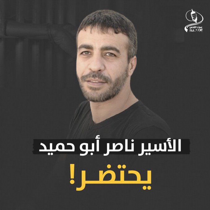 أعلن مسؤول فلسطيني أن الأسير ناصر أبو حميد المعتقل في سجون الاحتلال منذ عام 2002 دخل في غيبوبة، فيما ذكر مكتب إعلام الأسرى أن أبو حميد قد يستشهد في أي لحظة.