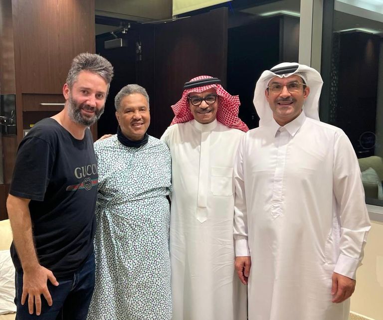 وقال محمد عبده في مقطع الفيديو بعد استقباله رابح صقر: "إحنا اليوم سعداء جدا، عندي حبيبي وأخويا اللي سوى أكبر معروف معايا، حضر الحفل مكاني إمبارح لإني في المستشفى".
