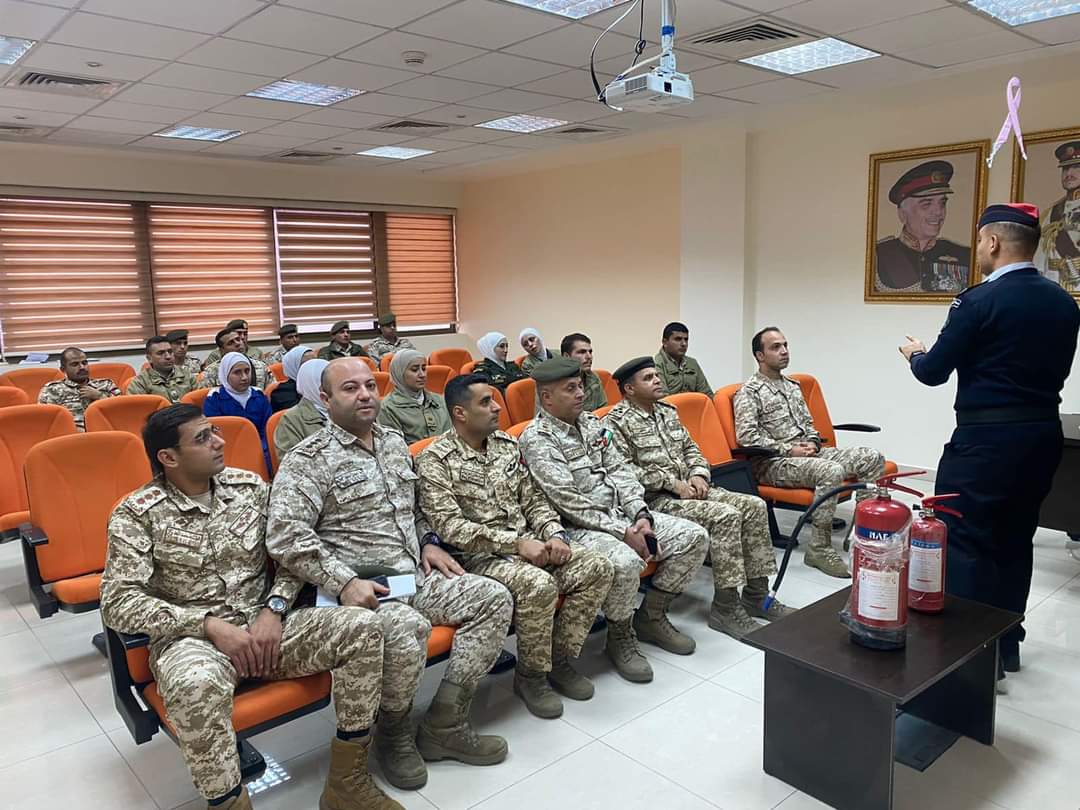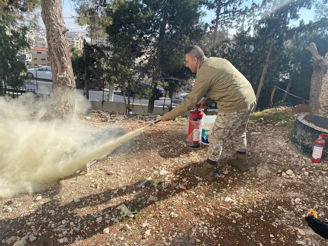 و تخلل التمرين محاضرة توعوية القاها كوادر الدفاع المدني عن اجراءات عملية الاخلاء و انواع الطفايات و الطريقة الصحيحة لاستخدامها.