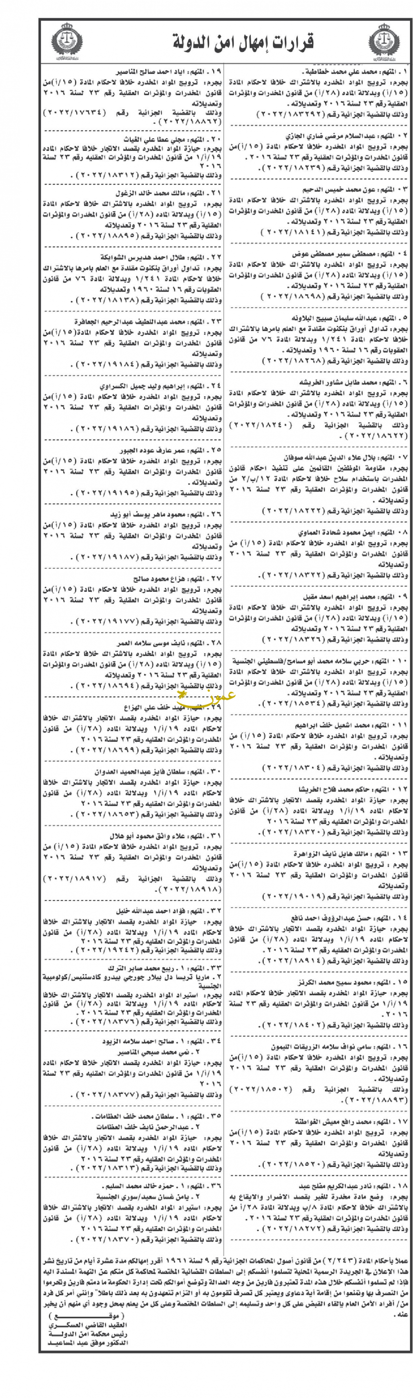 ونشرت المحكمة، أسماء المتهمين، عملا بأحكام المادة 243 /2 من قانون أصول المحاكمات الجزائية رقم 9 لسنة 1961.