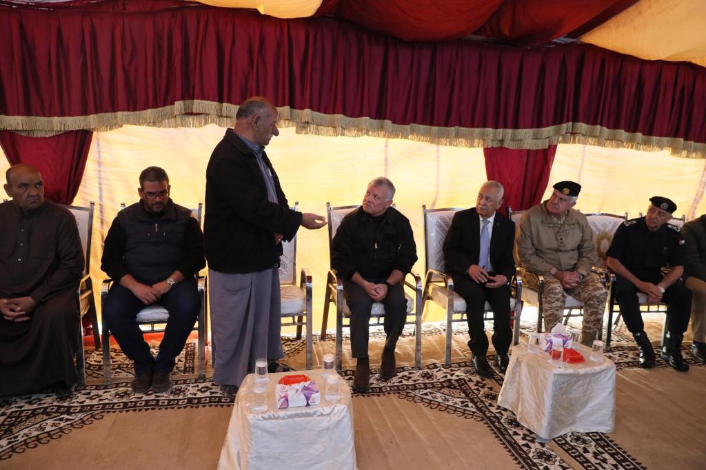 قدم جلالة الملك عبدالله الثاني، اليوم الخميس، واجب العزاء بوفاة الشهيد الرقيب إبراهيم الشقارين في محافظة الطفيلة.