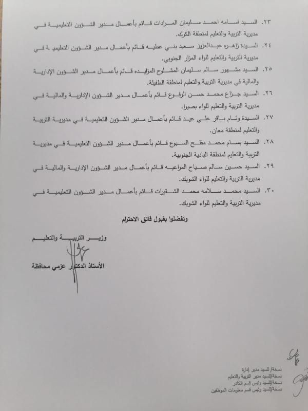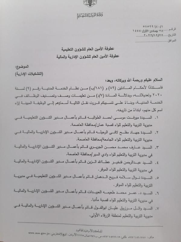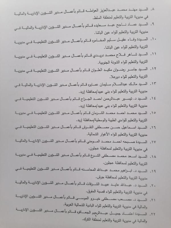 تنقلات إدارية في مديريات التربية والتعليم (أسماء)