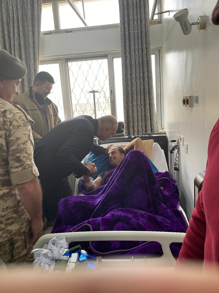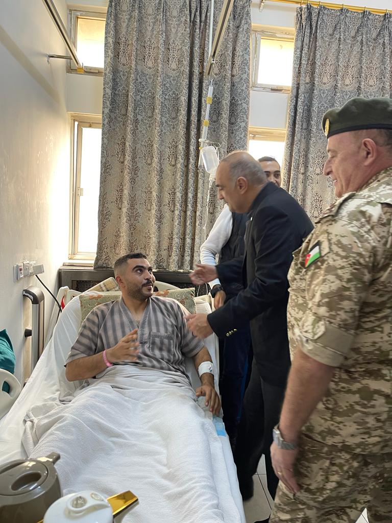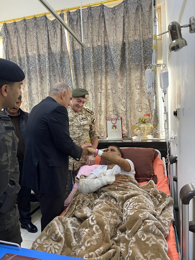 عاد رئيس الوزراء الدكتور بشر الخصاونة، يرافقه وزير الداخلية مازن الفراية ومدير عام الخدمات الطبيَّة الملكيَّة العميد الطَّبيب يوسف زريقات في مدينة الحسين الطبية اليوم الجمعة، المصابين من مرتبات الأمن العام، الذين أصيبوا خلال تأديتهم الواجب الرسمي في منطقة الحسينيَّة بمحافظة #معان الأسبوع الماضي.