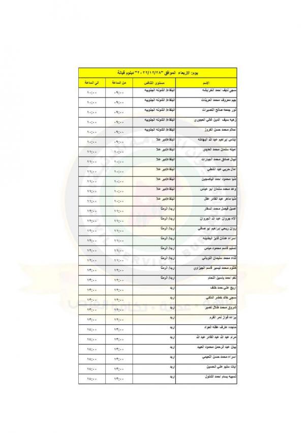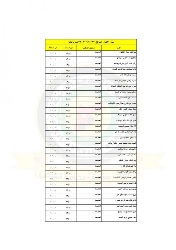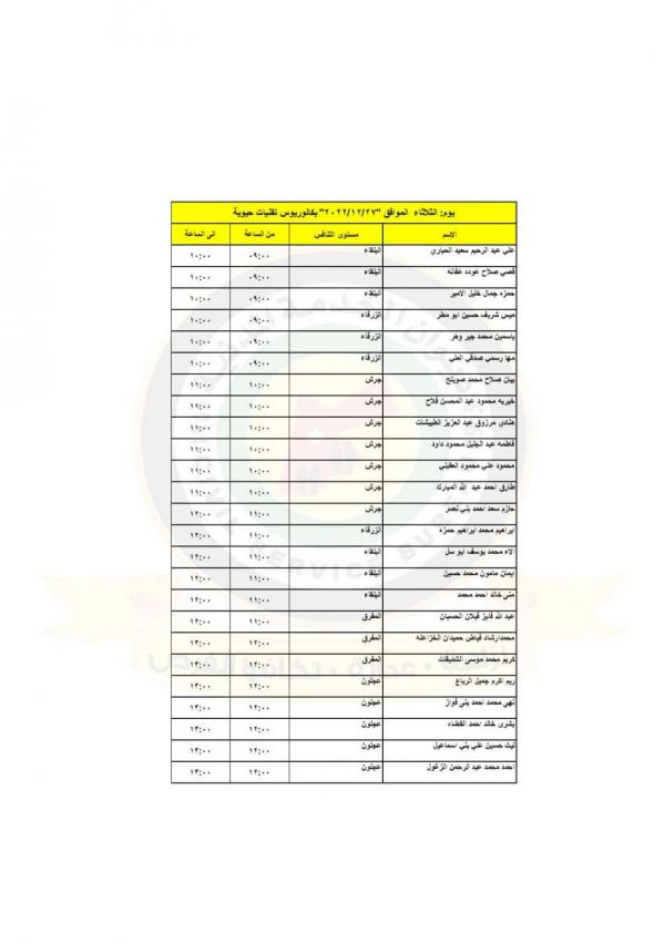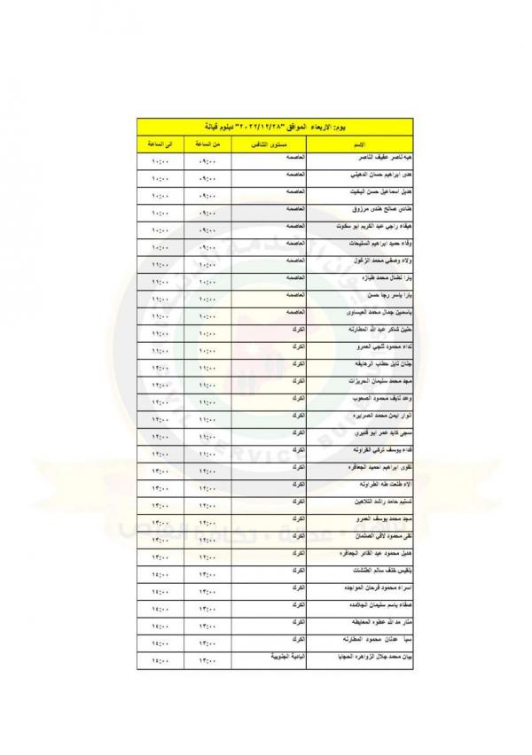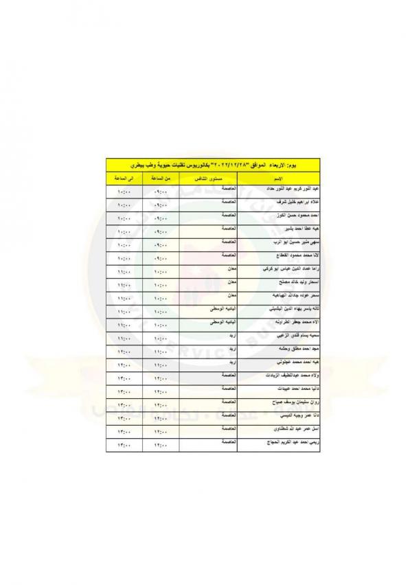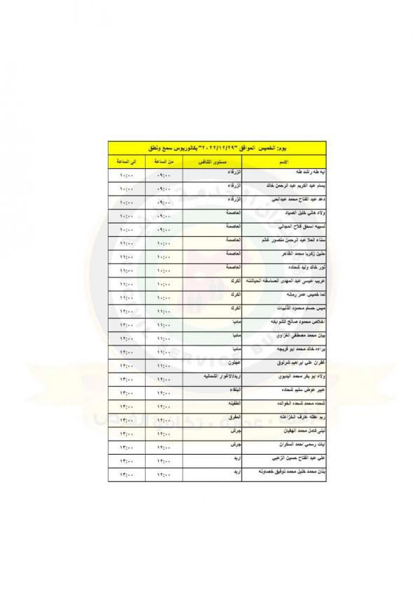 : دعت وزارة الصحة بالتنسيق مع ديوان الخدمة المدنية التالية اسماؤهم إلى التواجد في مديرية الموارد البشرية لاجراء المقابلات الشخصية لغايات استكمال التعيين.