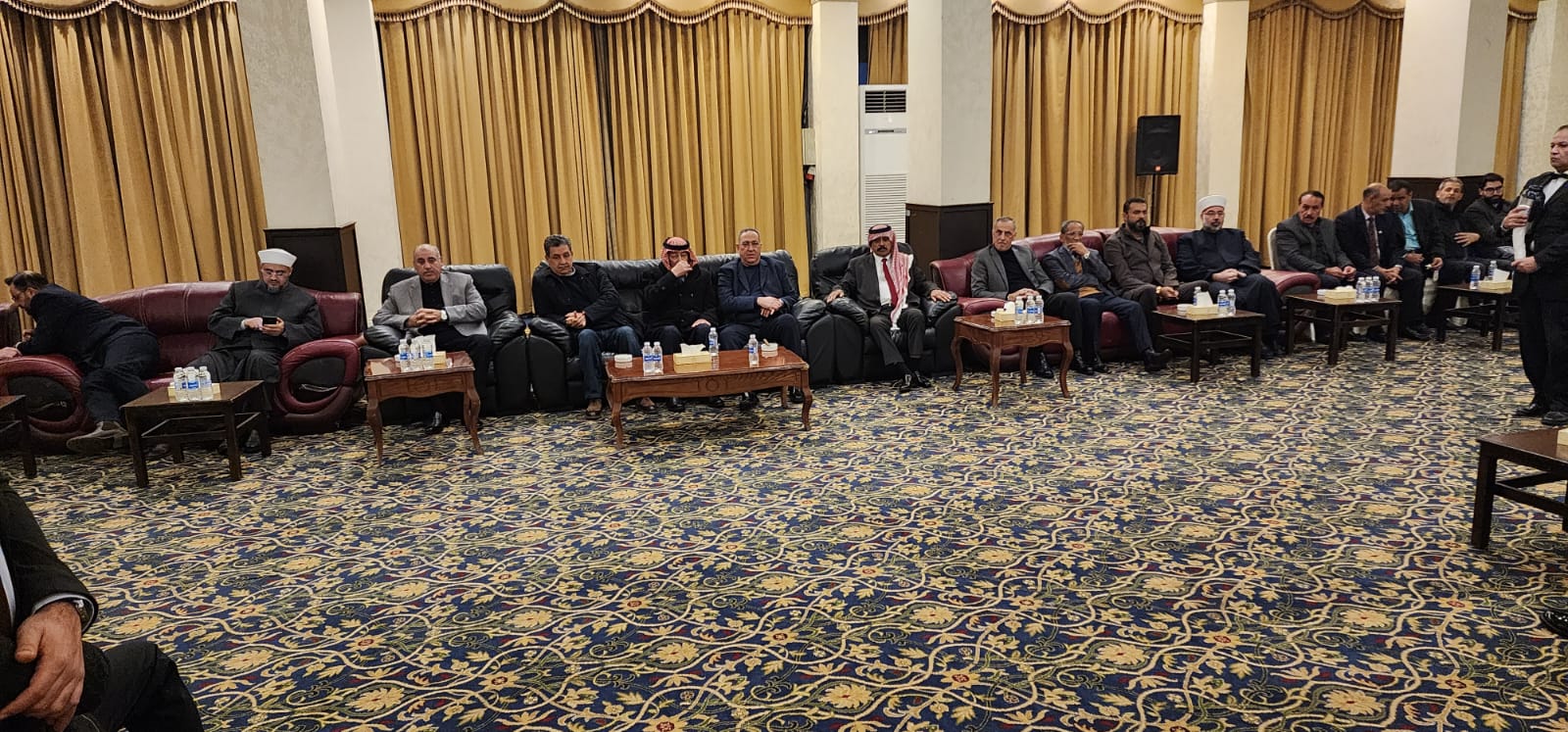 مندوبًا عن جلالة الملك عبد الله الثاني بن الحسين ، قدم رئيس الديوان الملكي يوسف العيسوي تعازيه بوفاة الحاج محمود عبد الجليل الحواري العزوني والد النائب اندرية.
