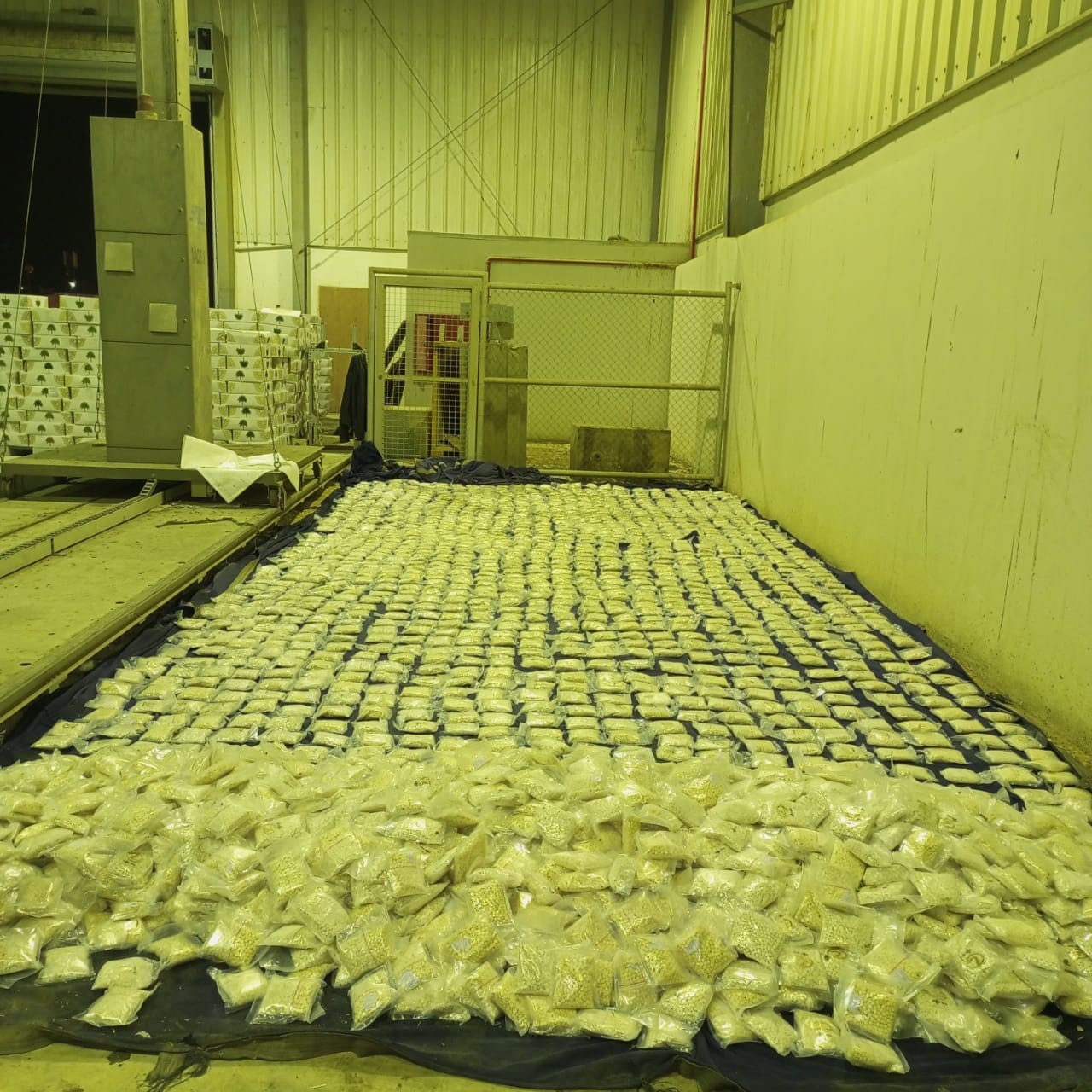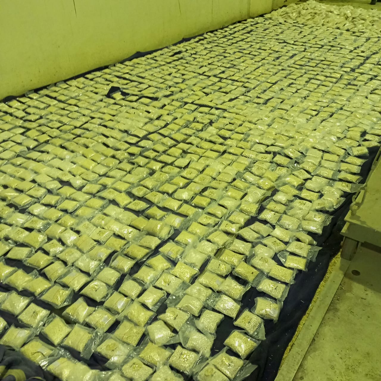 وفي التفاصيل، تم ضبط ما يقارب *509* كغم من حبوب الكبتاجون المخدر في " البراد" الشاحنة الأولى مخبأة داخل مادة عجين التمر، بالإضافة إلى ضبط ما يقارب *483* كغم من الكبتاجون المخدر في "البراد" الشاحنة الأُخرى وضمن نفس مادة عجين التمر.