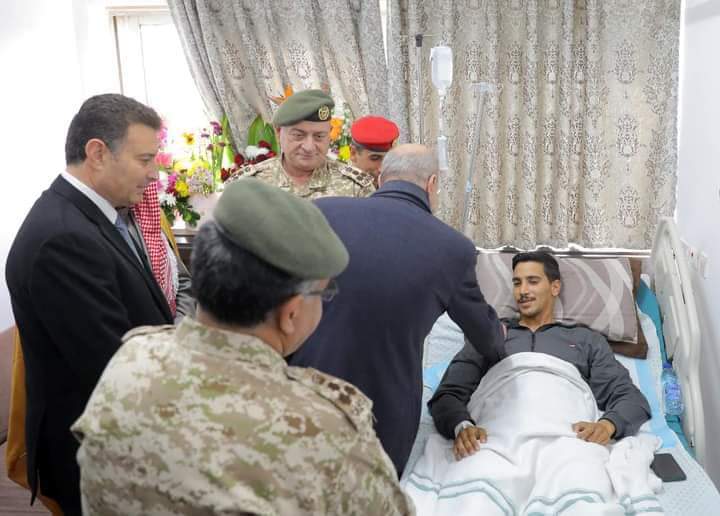 واطمأن الفايز والصفدي على الأوضاع الصحية للمصابين، متمنين لهم الشفاء العاجل، وأعربا لهم عن أحر التعازي بزملائهم الشهداء الذين ارتقوا  أثناء تأديتهم الواجب الرسمي وأن يتغمدهم الله بواسع رحمته ويسكنهم فسيح جناته.