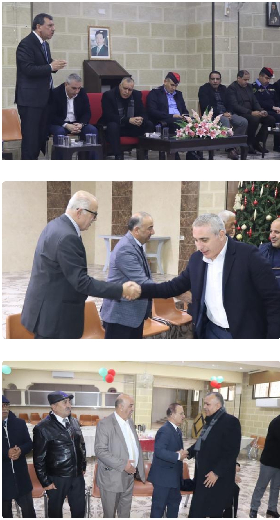 قدم محافظ الزرقاء حسن سالم الجبور يرافقه أعضاء المجلس الأمني للمحافظة التهنئة لممثلي الطوائف المسيحية في محافظة الزرقاء بمناسبة الأعياد المجيدة ورأس السنة الميلادية.