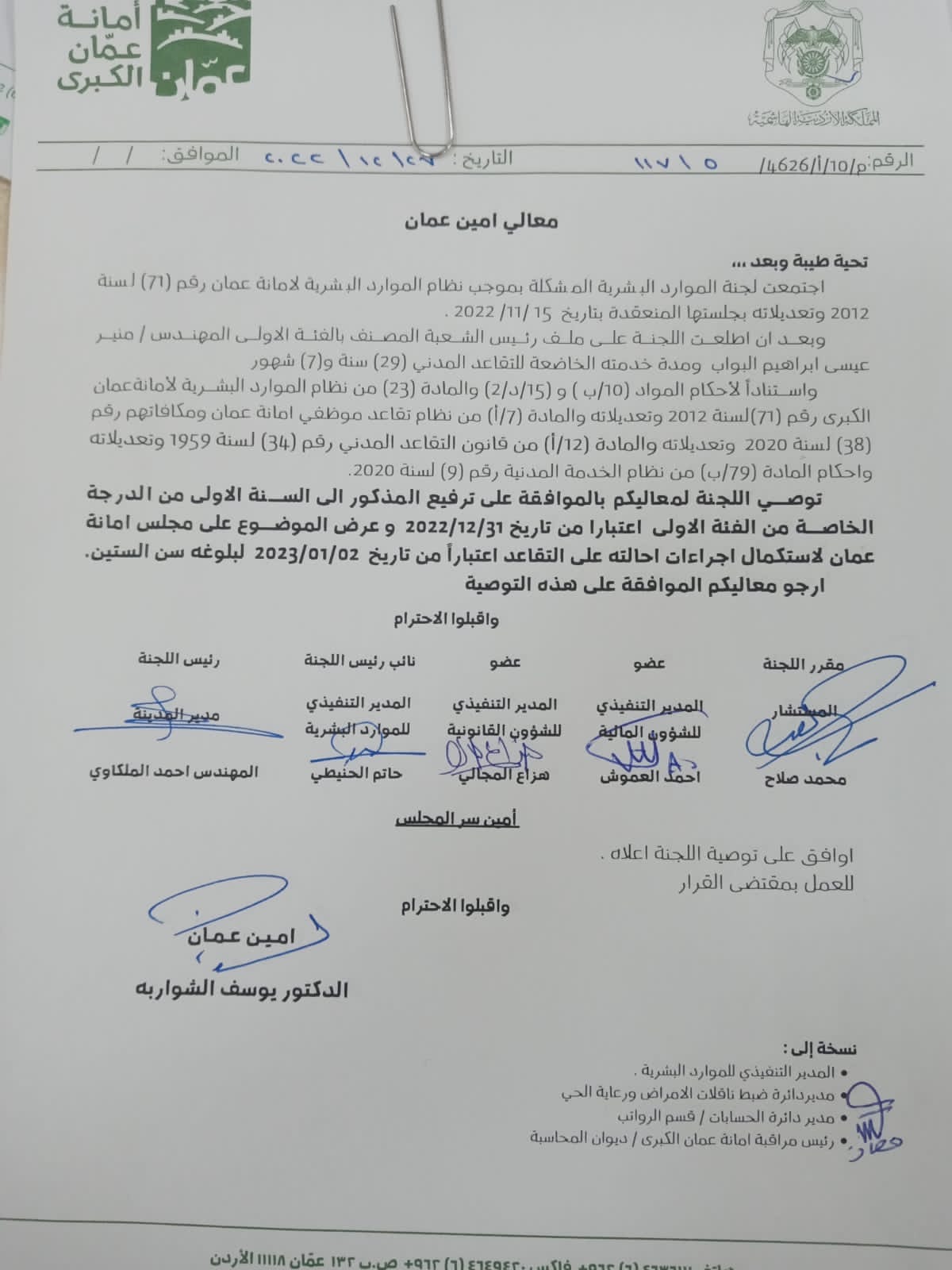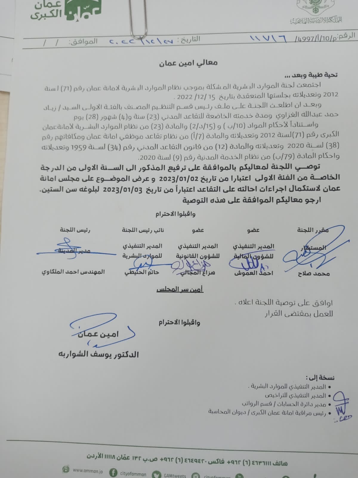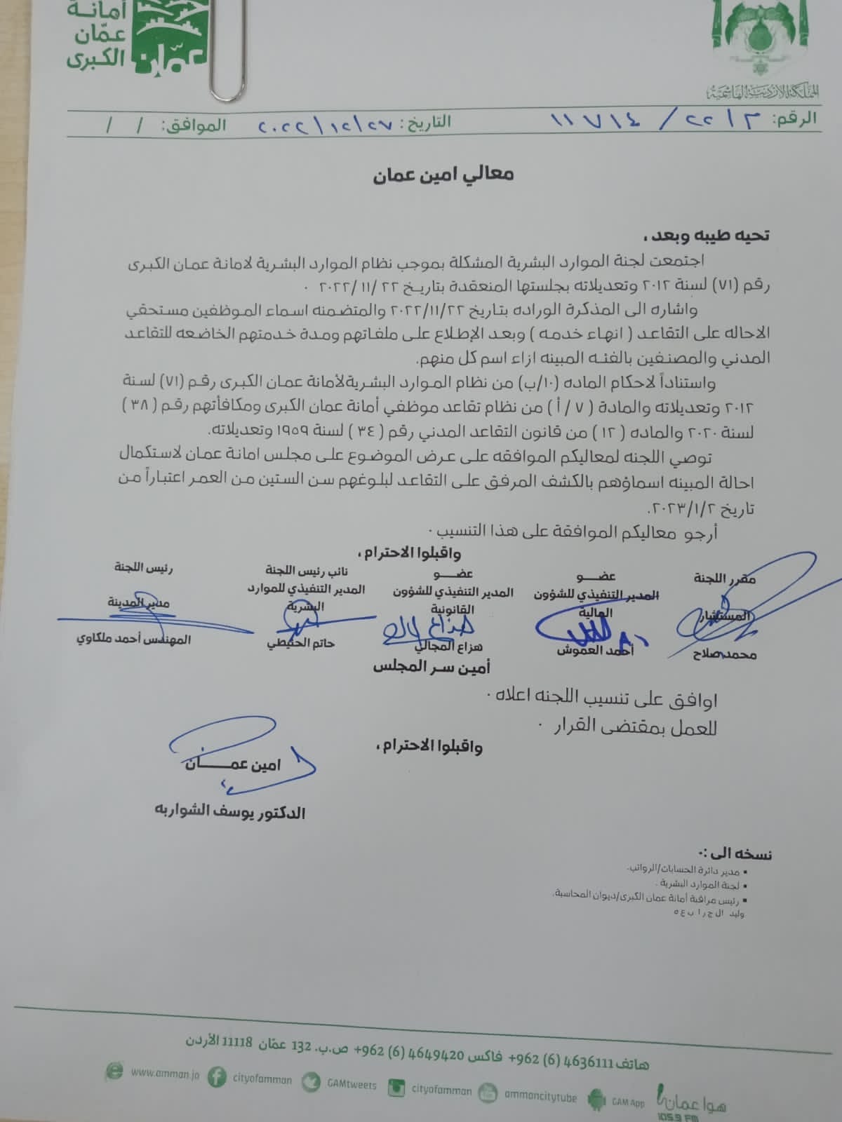 بالأسماء .. احالات الى التقاعد في امانة عمان