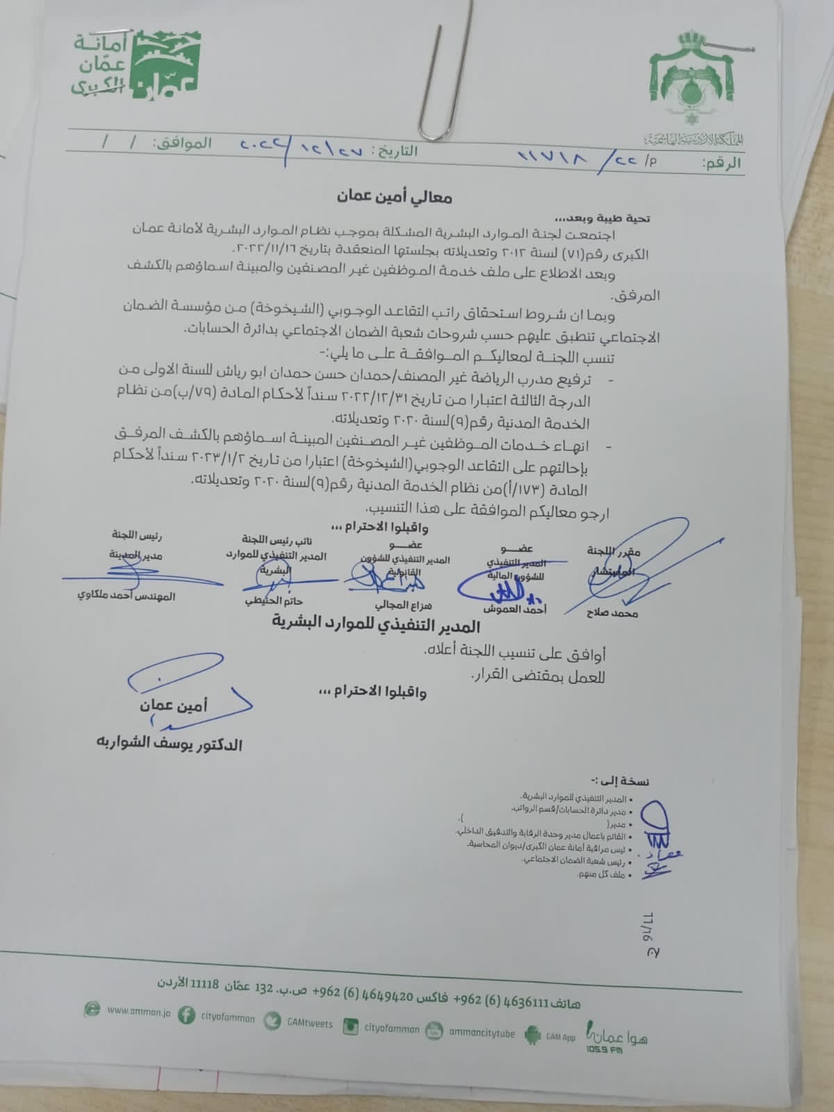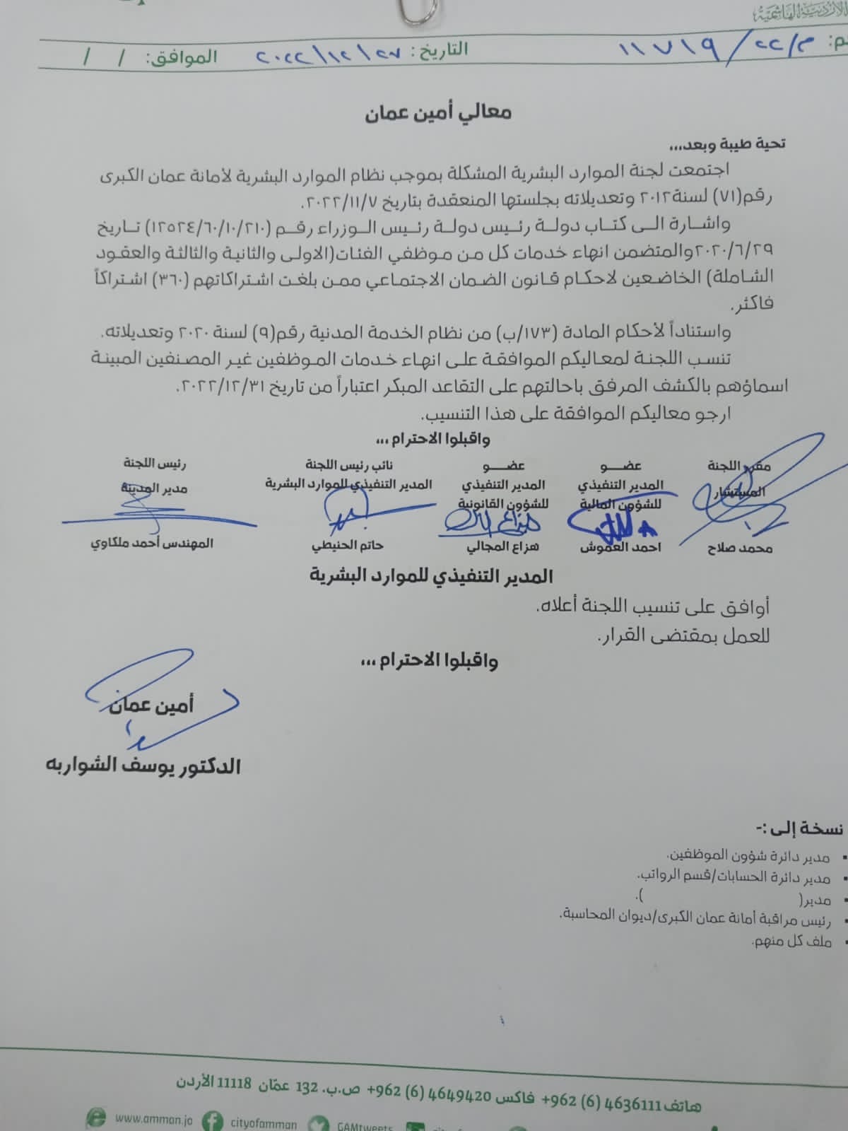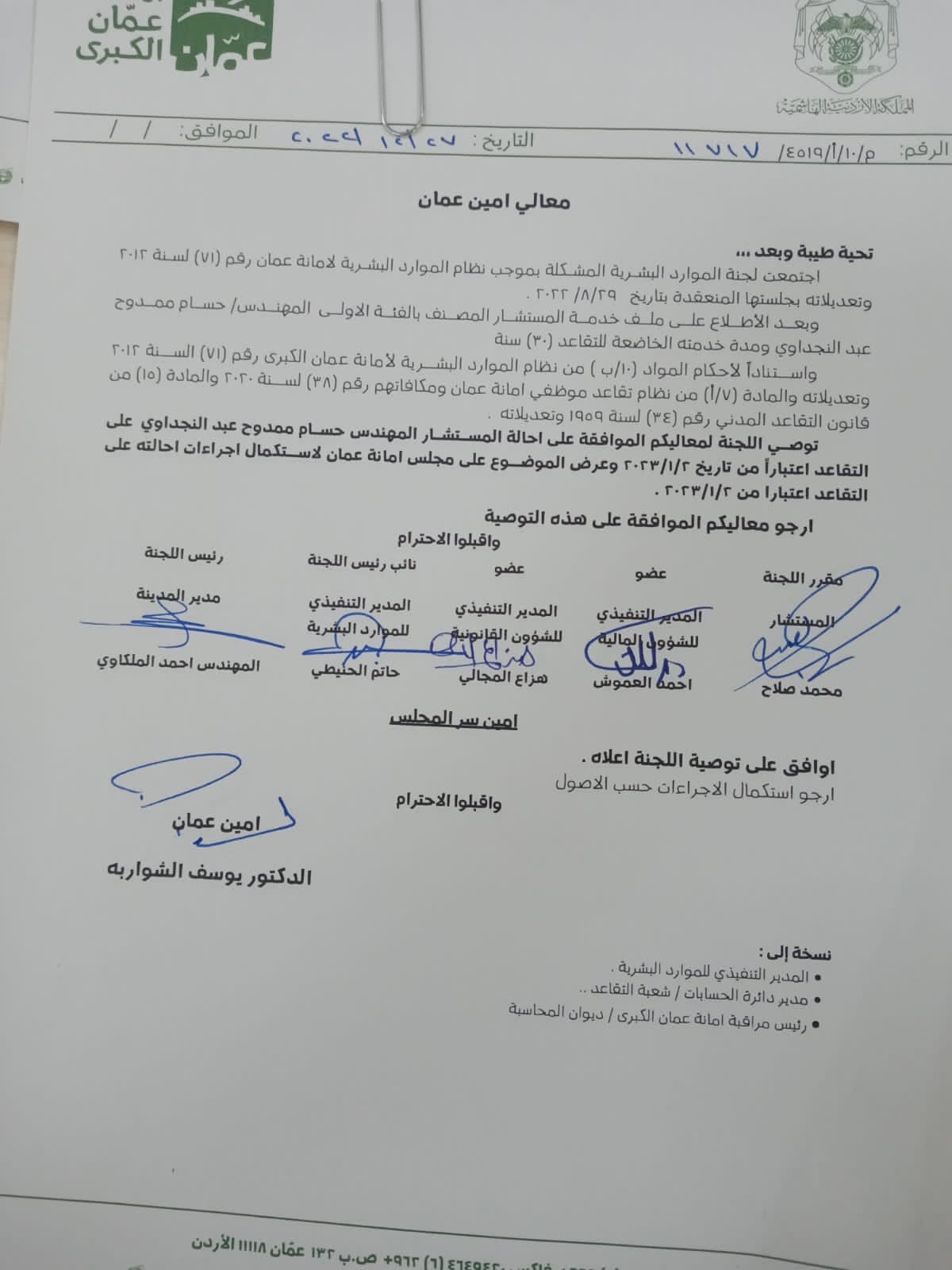 بالأسماء .. احالات الى التقاعد في امانة عمان