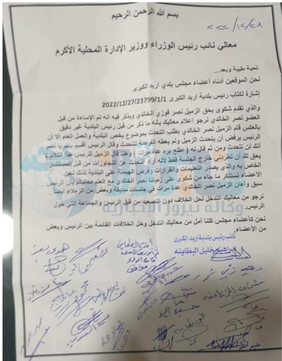 خلافات في بلدية إربد وشكاوى متبادلة لدى نائب رئيس الوزراء