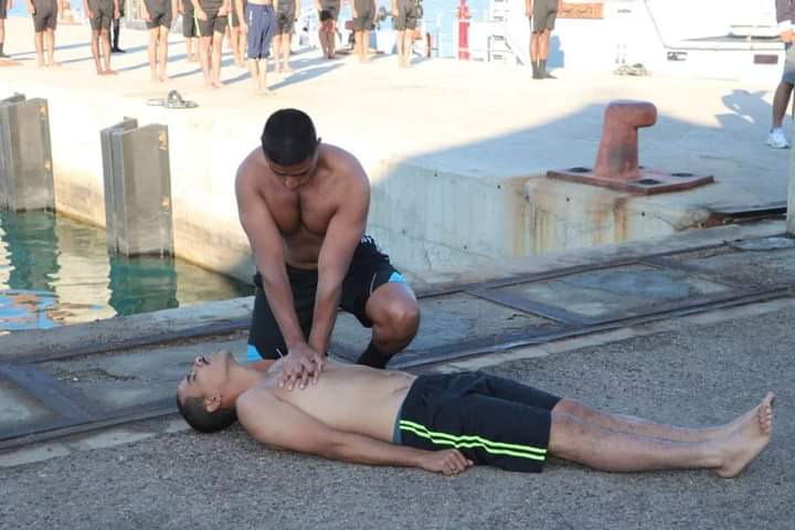 واستمع الحضور إلى إيجاز عسكري قدمه آمر مركز التدريب عن طبيعة الدورات التي اشتملت على مواضيع اللياقة البدنية، ومهارات السباحة بكافة أنواعها وأشكالها، والغطس والغطس الحر والإسعافات الأولية.