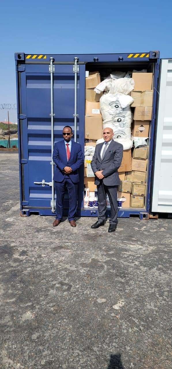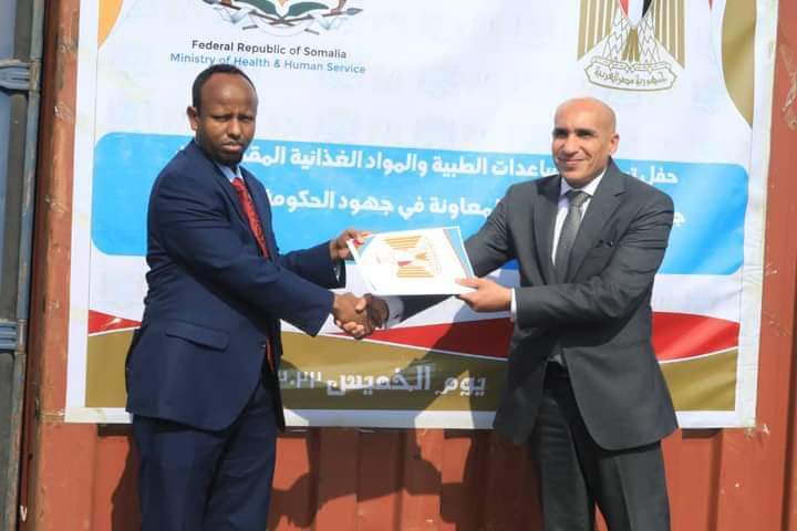 قامت السفارة المصرية في مقديشيو بتسليم الحكومة الصومالية شحنة مساعدات إنسانية مقدمة من الحكومة المصرية بمساهمة من كل من الأزهر الشريف ووزارة الدفاع ووزارة الصحة والسكان ووزارة التضامن الاجتماعي والهلال الأحمر المصري بالتنسيق مع وزارة الخارجية المصرية، وقد وصلت المساعدات عن طريق الشحن البحري إلى مقديشيو بإجمالي 240 طن من المواد الغذائية والطبية والإغاثية.