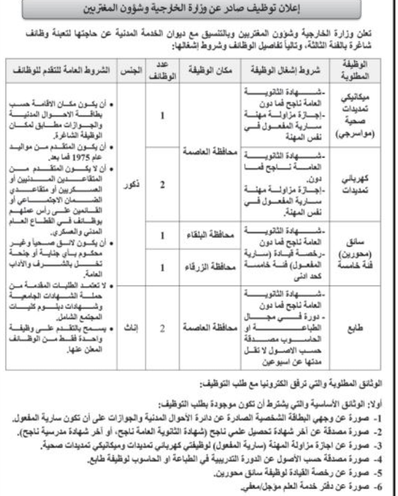 مؤسسات حكومية تعلن حاجتها لتعيين وتعبئة وظائف شاغرة