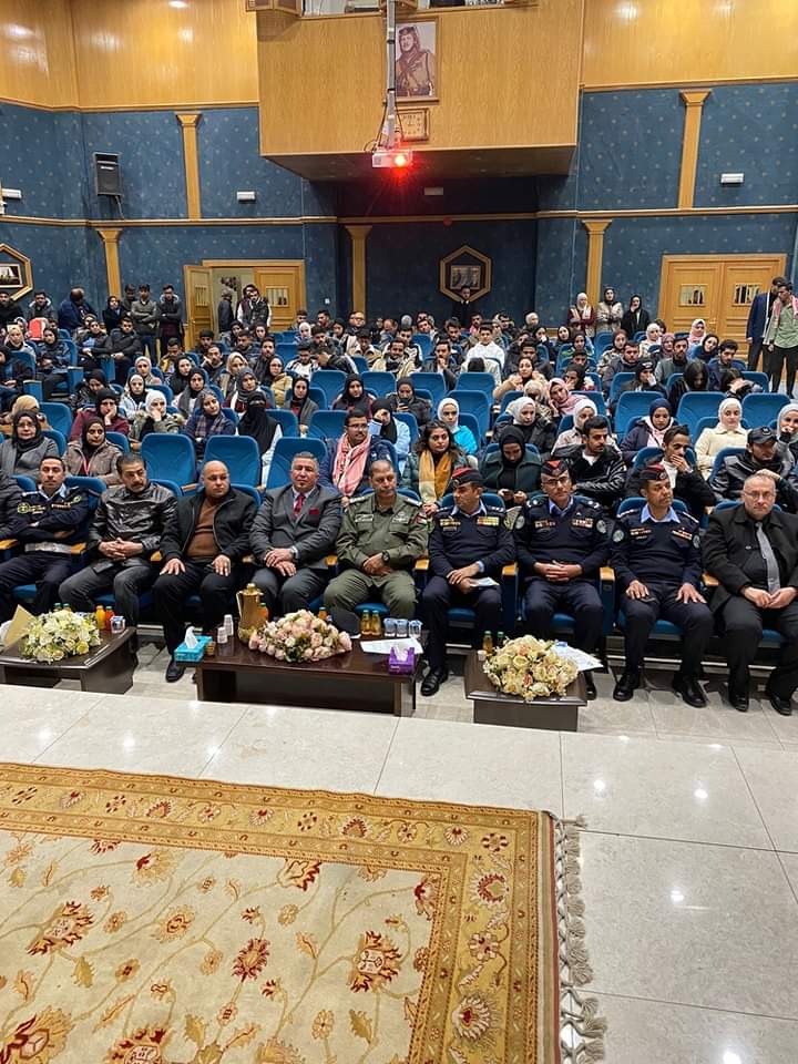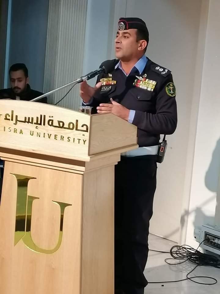 نظمـت الشرطـة المجتمعيـة في قيـادة شرطـة الباديـة الملكيـة/ مديريـة شرطـة الباديـة الوسطـى يـومـاً توعـويـاً بالتنسيـق والتعـاون مـع جامعـة الإسـراء الخاصـة عـن آفـة المخـدرات وحـوادث السيـر ، وذلـك بحضـور مديـر شرطـة الباديـة الوسطـى العقيـد الدكتـور حسـام القاضـي وعميـد شؤون الطلبـة وعـدد مـن أعضـاء الهيئتيـن التدريسيـة والإداريـة وطلبـة الجامعـة .