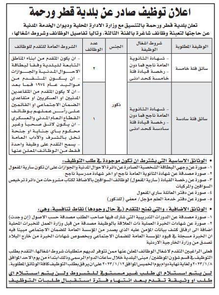 مؤسسات حكومية وبلديات تعلن حاجتها لتعيين وتعبئة وظائف شاغرة