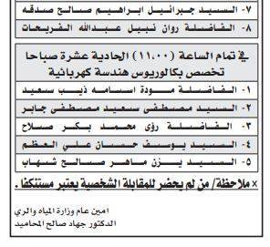 ودعت المؤسسات المدرجة أسماؤهم أدناه لاصطحاب الوثائق اللازمة للتعيين.