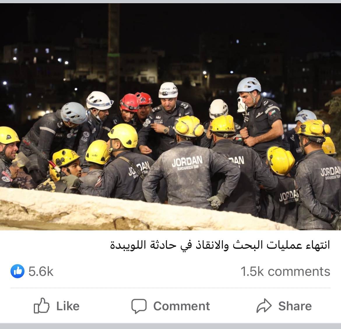 وفي قراءة لردود الأفعال على المنشور، كانت الصور الأكثر تفاعلاً هي تلك المجموعة التي حملت معاني الموت والحياة، الشهادة والفداء، الرحيل والبقاء، في خمس صور وهي لنعش شهيد حُمل على أكتاف زملائه، ثم صورة لناجٍ من حادثة اللويبدة لحظة إخراجه سالماً بأيدي فريق الإنقاذ، وصورة مشابهة لرضيعة أنقذها النشامى في ذات الحادثة، وصورة أخيرة لمندوب إذاعة الأمن العام في الزرقاء الملازم1 مساعد الشمري، والذي رحل في العام 2022 وبكته المدينة وأطلقت اسم أحد شوارعها عليه، بعد أن ساعد الاف الأسر وتحول لأيقونة للعطاء عرفها أهل الزرقاء وسكانها.