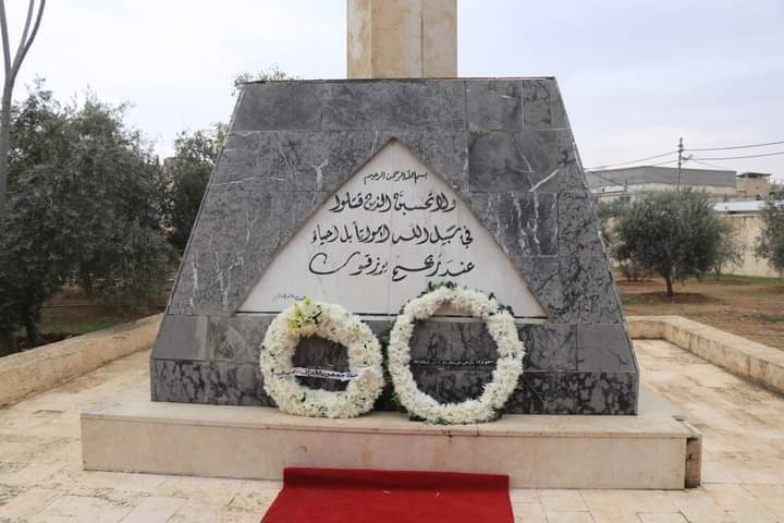 ووضع القائم بالأعمال في السفارة العراقية ومندوب القيادة العامة للقوات المسلحة أكاليلاً من الزهور على الصرح التذكاري للشهداء في المقبرة، في حين عزف الصدّاحون لحن الرجوع الأخير، وقام المرشد الديني لقيادة المنطقة العسكرية الشرقية والحضور بقراءة الفاتحة على أرواح شهداء الجيش العراقي.