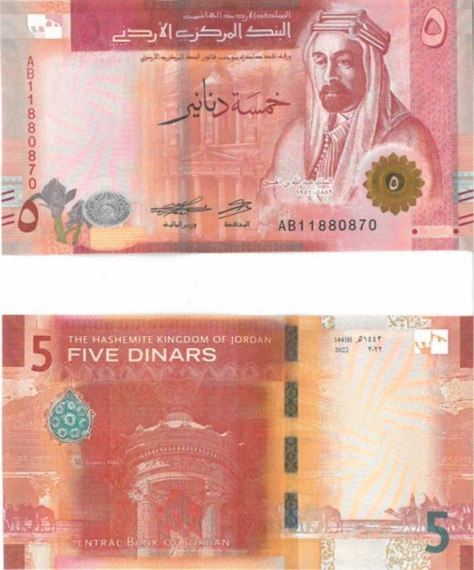 أعلن البنك المركزي عن طرح الإصدار الخامس من النقد الاردني في التداول بنفس فئات الاصدار الحالي (خمسون دينارا، عشرون دينارا، عشرة دنانير، خمسة دنانير، دينار واحد).