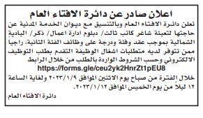 مؤسسات حكومية وبلديات تعلن حاجتها لتعيين وتعبئة وظائف شاغرة