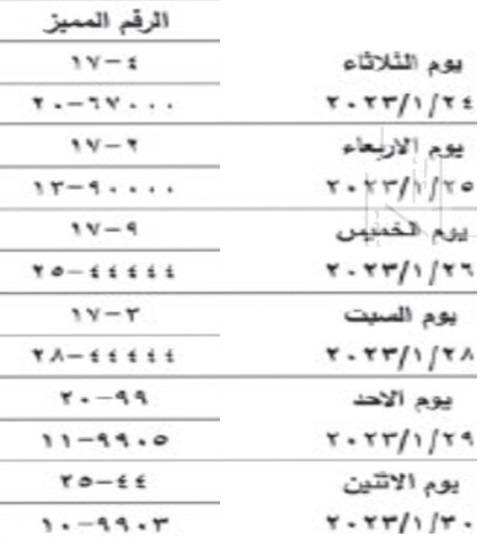 أعلنت نيابة أمن الدولة، اليوم الاثنين، عن طرح مجموعة من أرقام السيارات المميزة المبينة بالجدول أدناه، للبيع بالمزاد العلني الإلكتروني / إدارة ترخيص السواقين والمركبات.