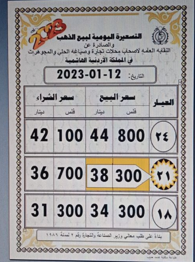 أسعار الذهب في الأردن
