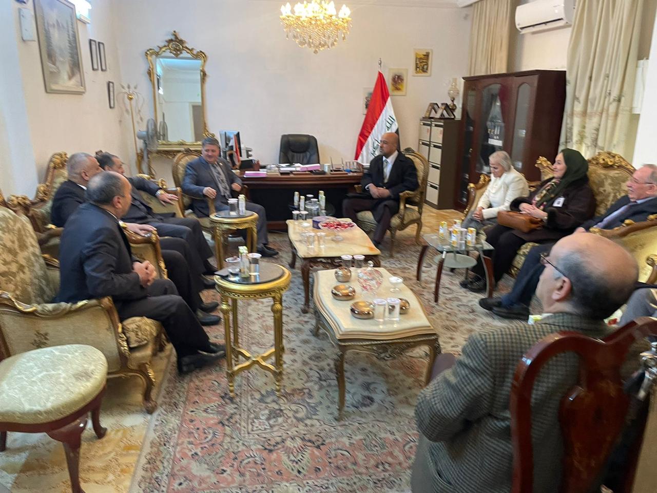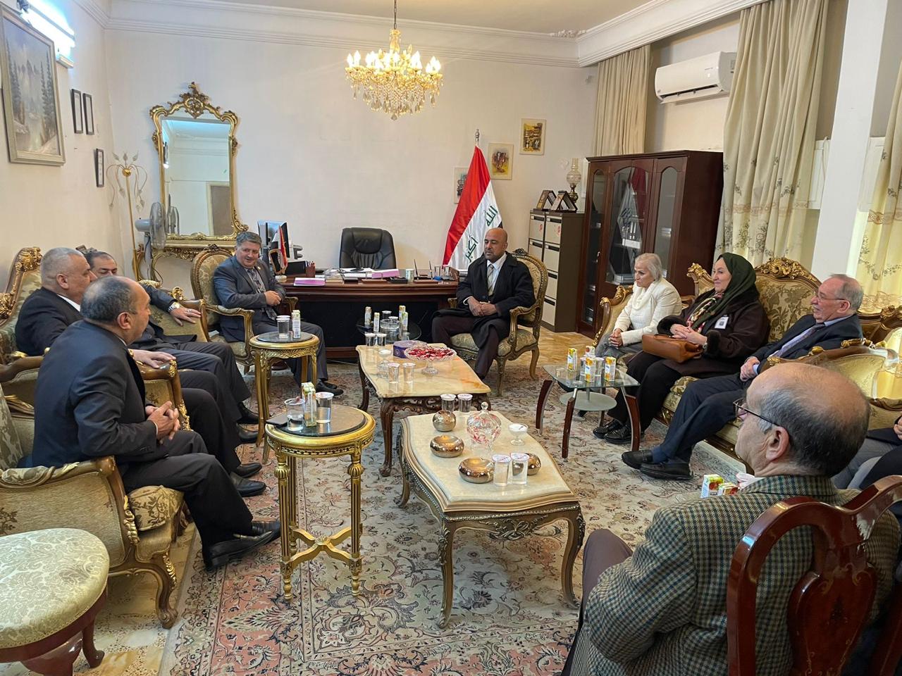 وقدم بإسمه ونيابة عن أعضاء الوفد المرافق وأعضاء هيئات جمعية عَون الثقافية الوطنية أسمى آيات التهاني والتبريكات للعميد عدنان الوادي الملحق العسكري بمناسبة عيد الجيش العراقي ال 102.