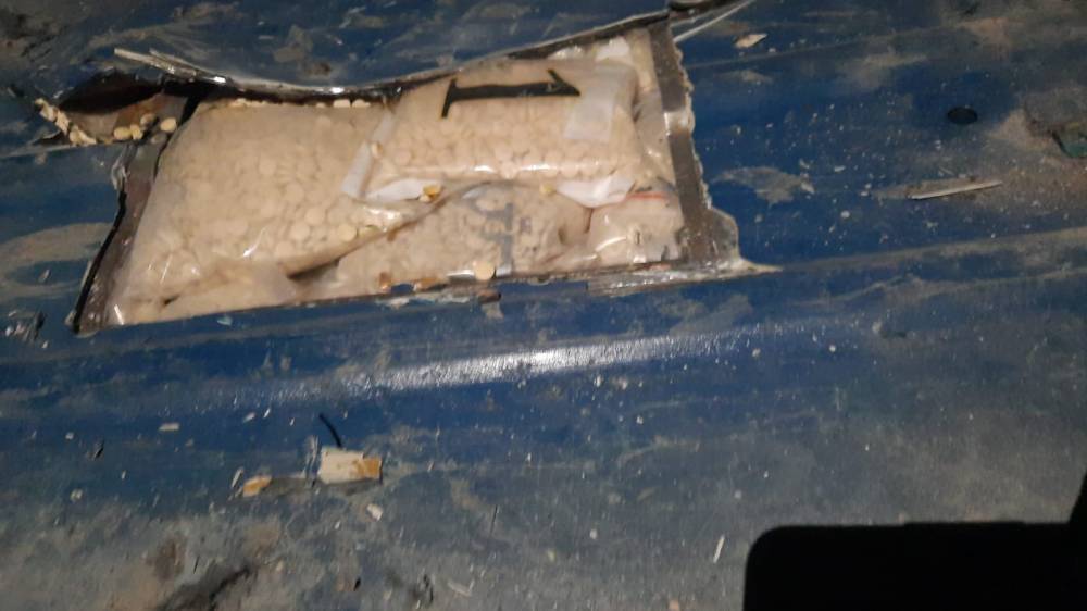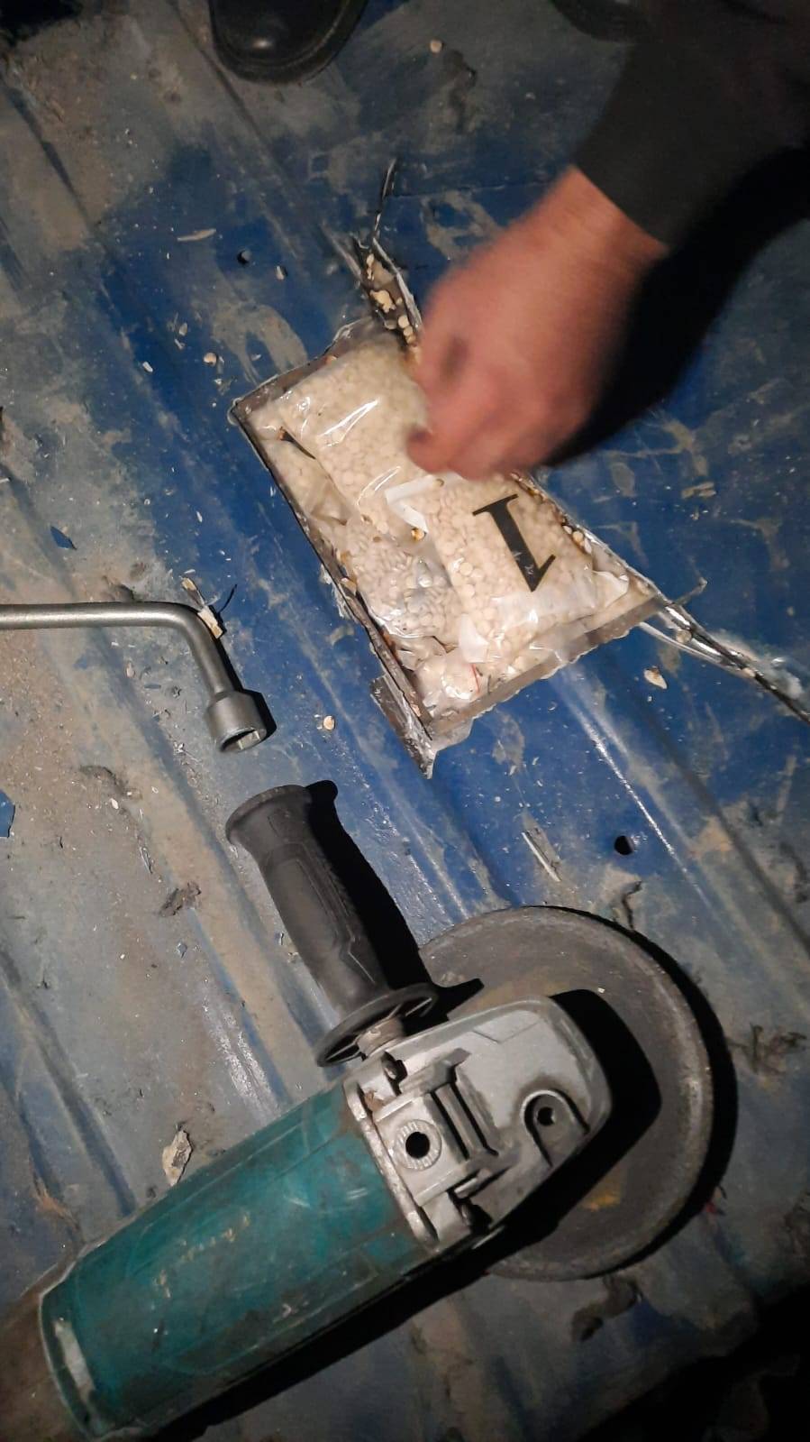 وفي القضية الثانية وفي احد المعابر الحدودية جرى القاء القبض على احد الاشخاص فور وصوله للمعبر بعد ان وردت معلومات عن قيامه باخفاء كمية من الحبوب المخدرة بجسم المركبة لتهريبها لدولة مجاورة ، وبتفتيش المركبة عُثر على 10 آلاف حبة مخدرة أُخفيت داخل إحدى القطع الميكانيكية في المركبة.