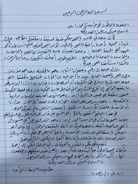 ووجد الروابدة نفسه غير قادر على الاستمرار في مسؤوليته بقيادة العمل في المؤسسة وفق ما جاء في الاستقالة.