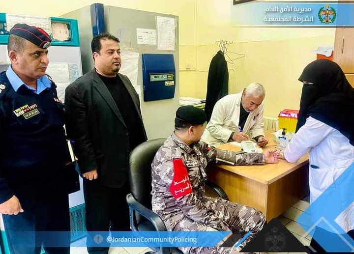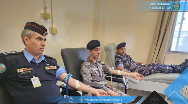 نفذت مديرية الأمن العام اليوم، في محافظة مادبا وبالتعاون مع مستشفى النديم الحكومي، حملة للتبرع بالدم لتوفير الدم للمحتاجين وتعزيز المخزون الإستراتيجي من وحدات الدم، وذلك تأكيداً للدور الانساني الذي تقوم به المديرية، بالتعاون مع المؤسسات الرسمية والأهلية في خدمة المجتمع المحلي.