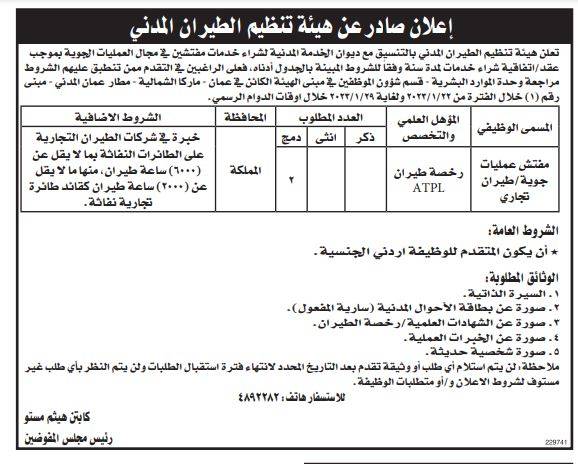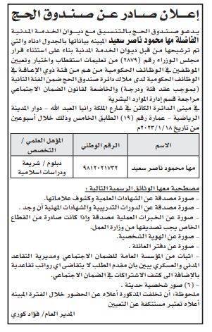 أعلنت عدد من المؤسسات الحكومية، اليوم الأربعاء ، عدد من الوظائف الشاغرة لديها، بالتنسيق مع ديوان الخدمة المدنية.